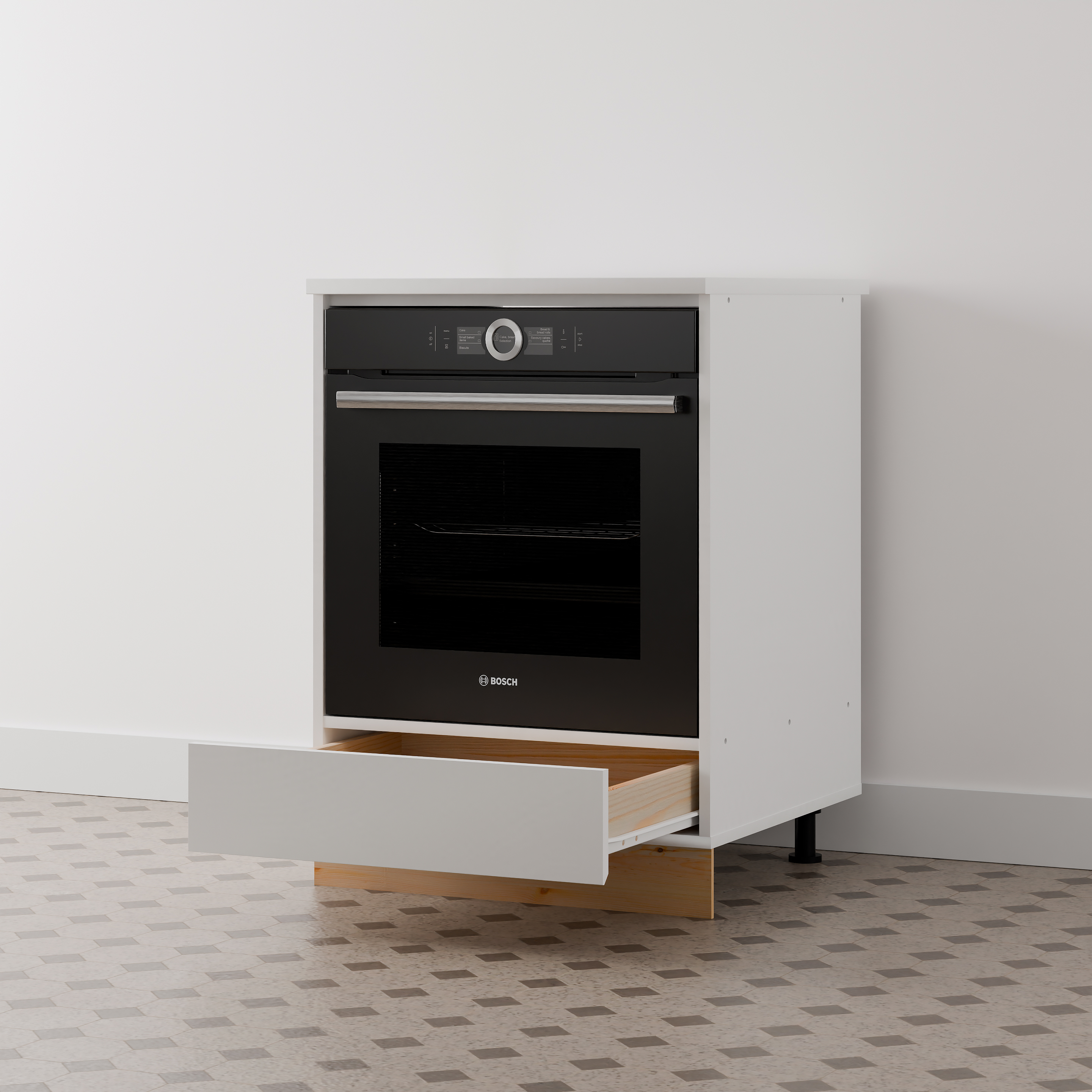 Надёжность: до 10 кг. В этом ящике без усилий разместятся противни для духовки, формы для выпечки, столовые приборы, полотенца — всё, что всегда должно быть под рукой