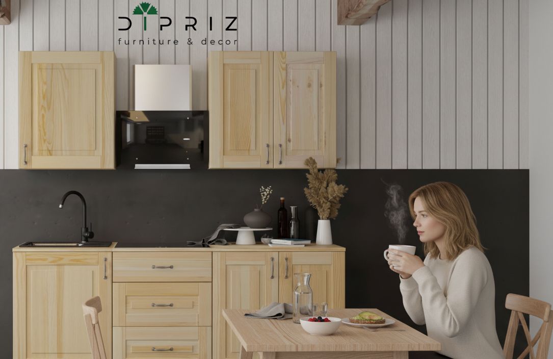 Образ и ключевое сообщение: «Для ценителей естественной красоты и энергии. Лак раскрывает насыщенный медовый оттенок и живую текстуру сосны, наполняя кухню солнечным теплом. Практично и выразительно».