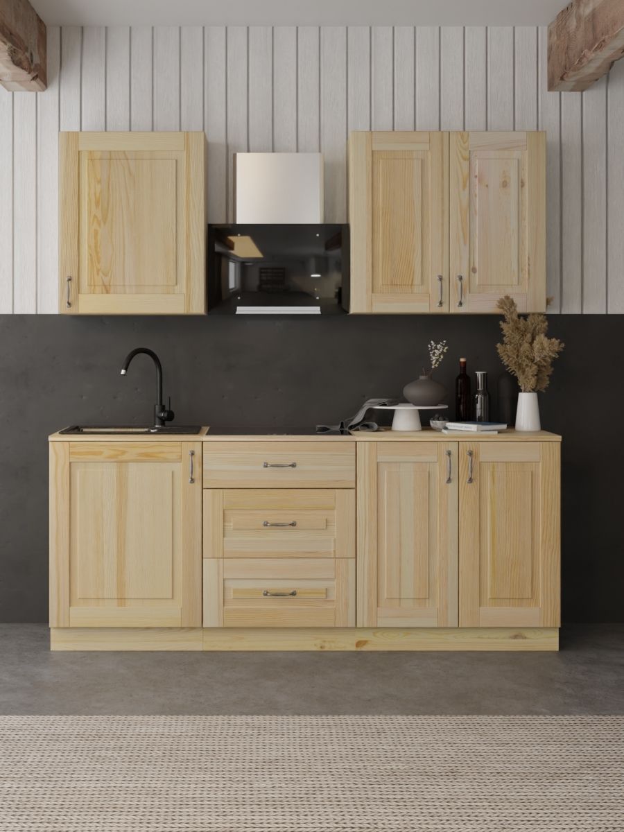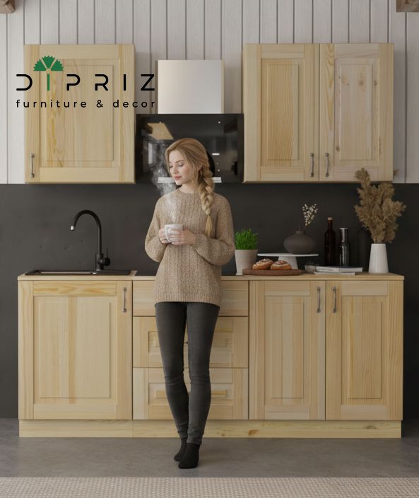 Образ и ключевое сообщение: «Для ценителей естественной красоты и энергии. Лак раскрывает насыщенный медовый оттенок и живую текстуру сосны, наполняя кухню солнечным теплом. Практично и выразительно».