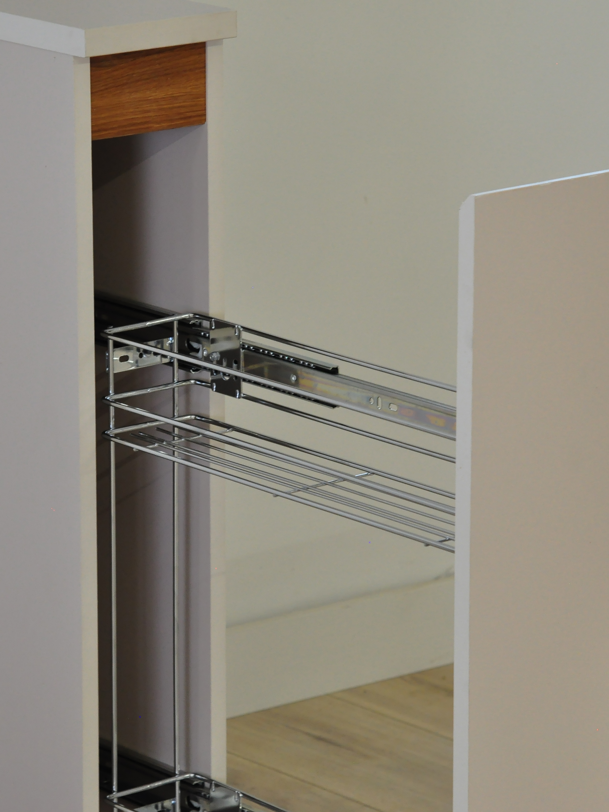 Благодаря своим компактным размерам (ширина – 15 см, глубина – 60 см, высота – 84,7 см), этот модуль карго эффективно использует узкие пространства кухни. Встроенные отсеки для хранения позволяют удобно разместить специи, бутылки, кухонные принадлежности или бытовую химию, обеспечивая порядок и лёгкий доступ к необходимым вещам.