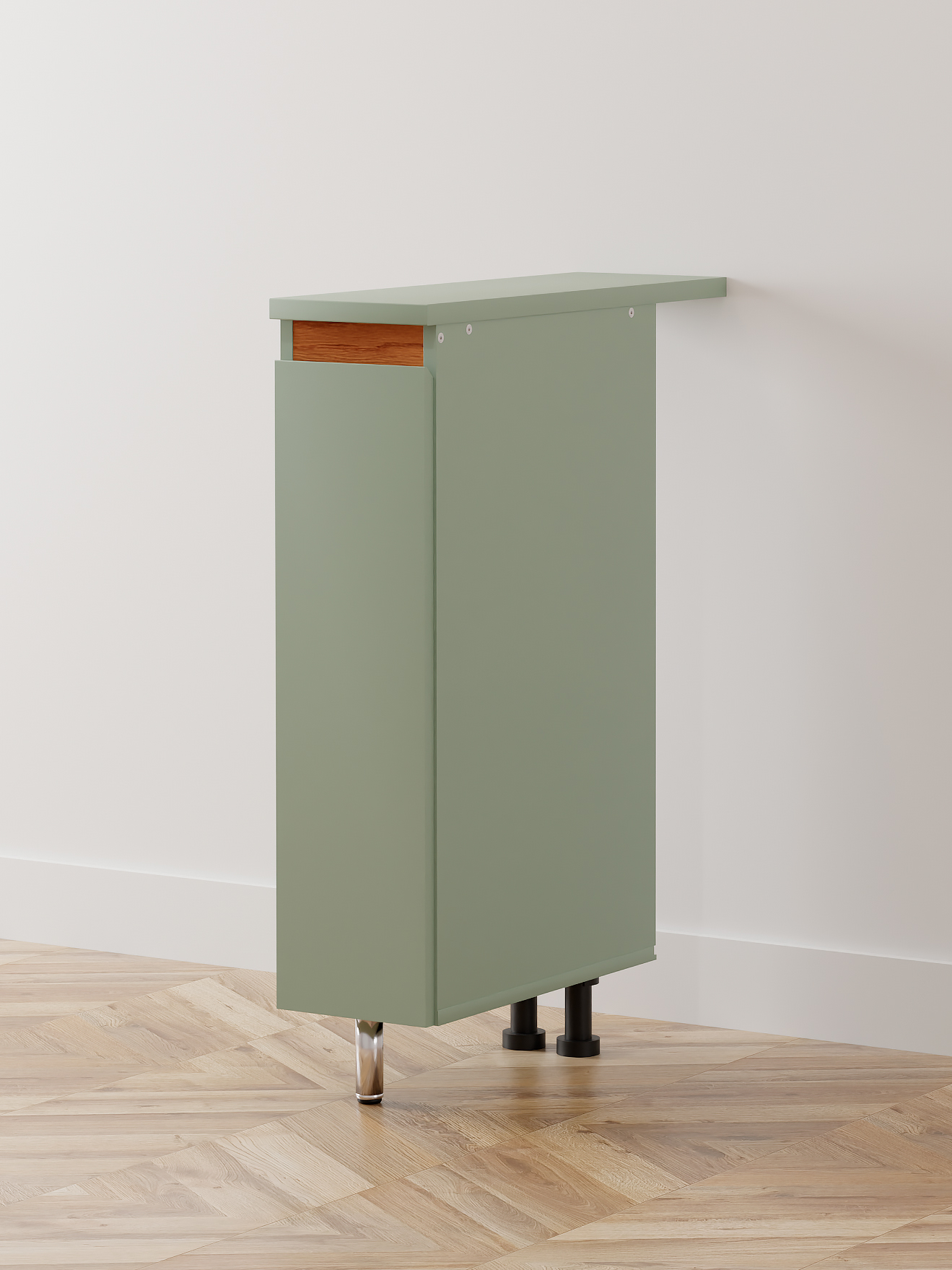 Благодаря своим компактным размерам (ширина – 15 см, глубина – 60 см, высота – 84,7 см), этот модуль карго эффективно использует узкие пространства кухни. Встроенные отсеки для хранения позволяют удобно разместить специи, бутылки, кухонные принадлежности или бытовую химию, обеспечивая порядок и лёгкий доступ к необходимым вещам.
