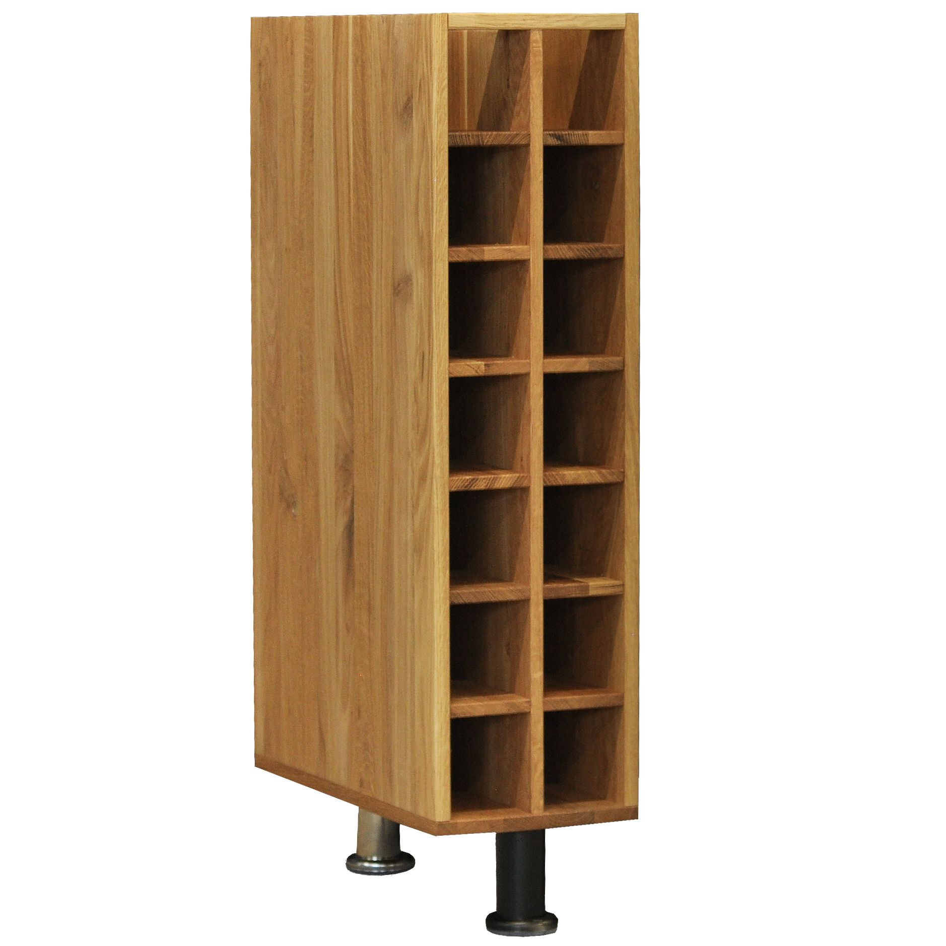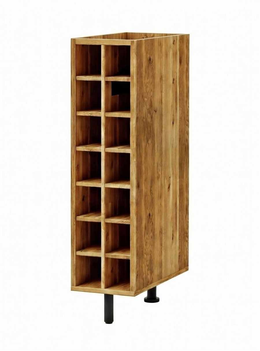 Конструкция винного шкафа для бутылок из массива дуба оснащена 14 нишами, которые подойдут для аккуратной организации пространства кухни и размещения различных предметов: от бутылок с любимыми напитками до специй и декора. Размеры шкафа под кухню в собранном виде (Ширина х Глубина х Высота, см) - 20х30.4х82.5 см, что позволит использовать его как в качестве небольшой кухонной тумбы для бутылок, так и для создания полноценного кухонного гарнитура серии Валенсия. Этот вариант модуля кухни поставляется без столешницы.