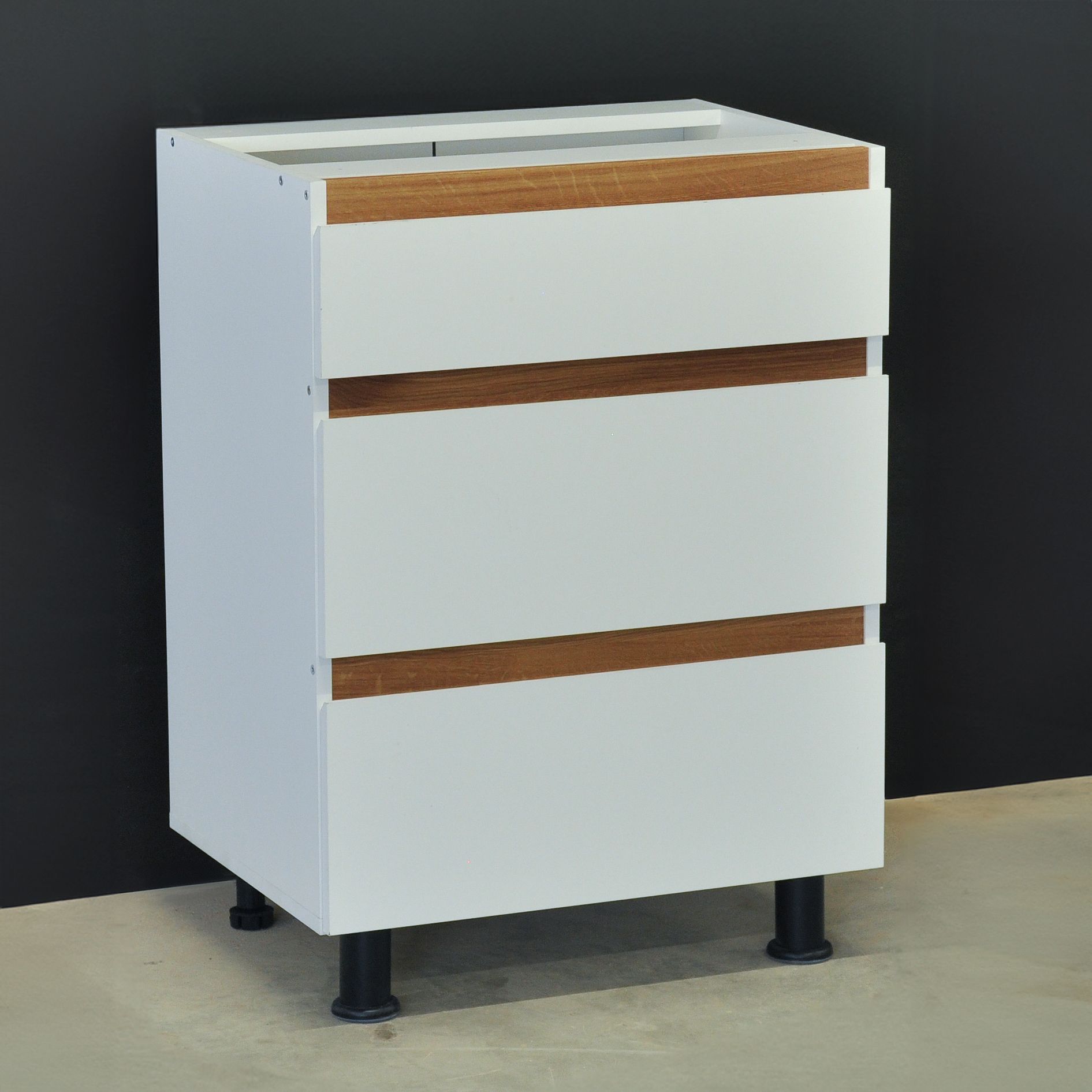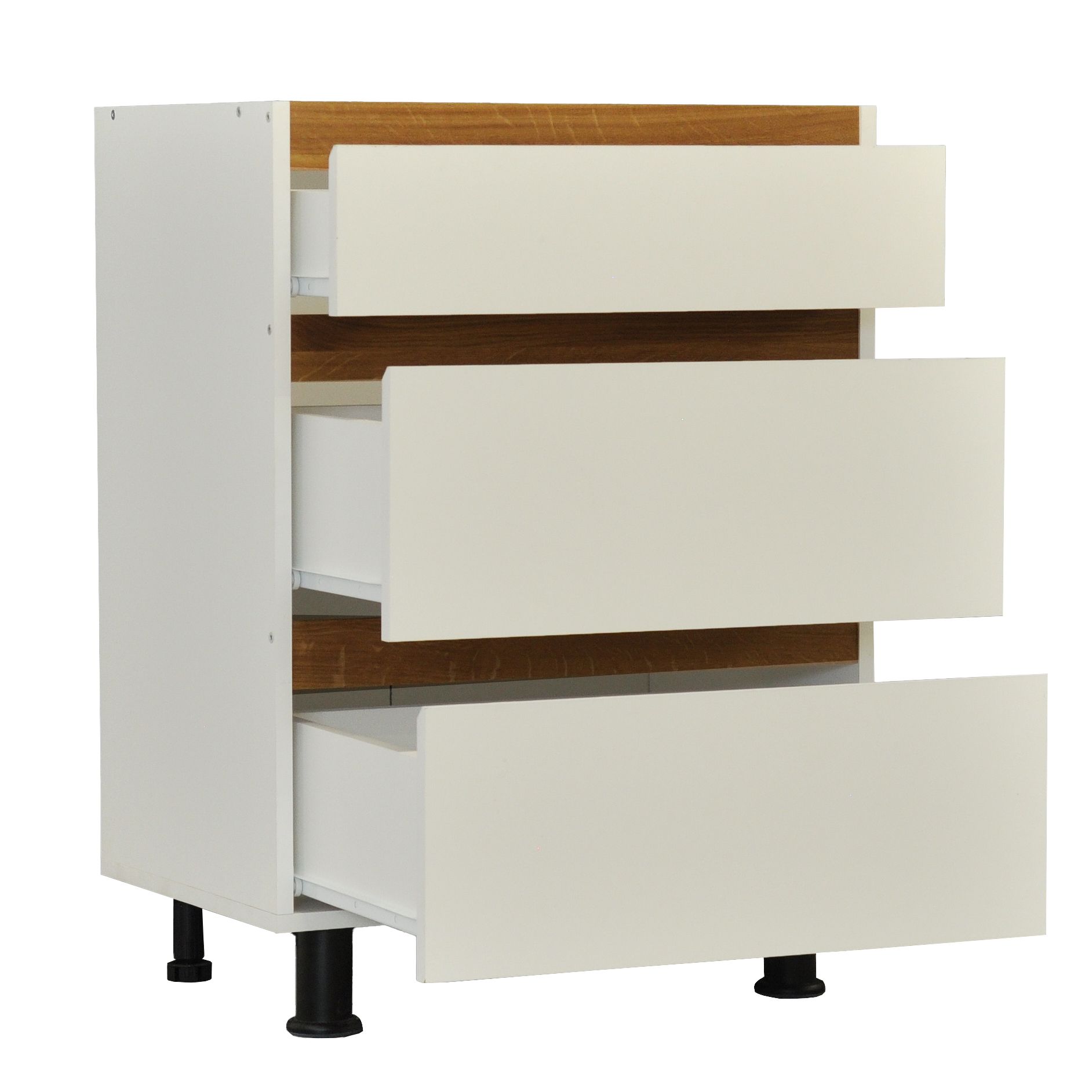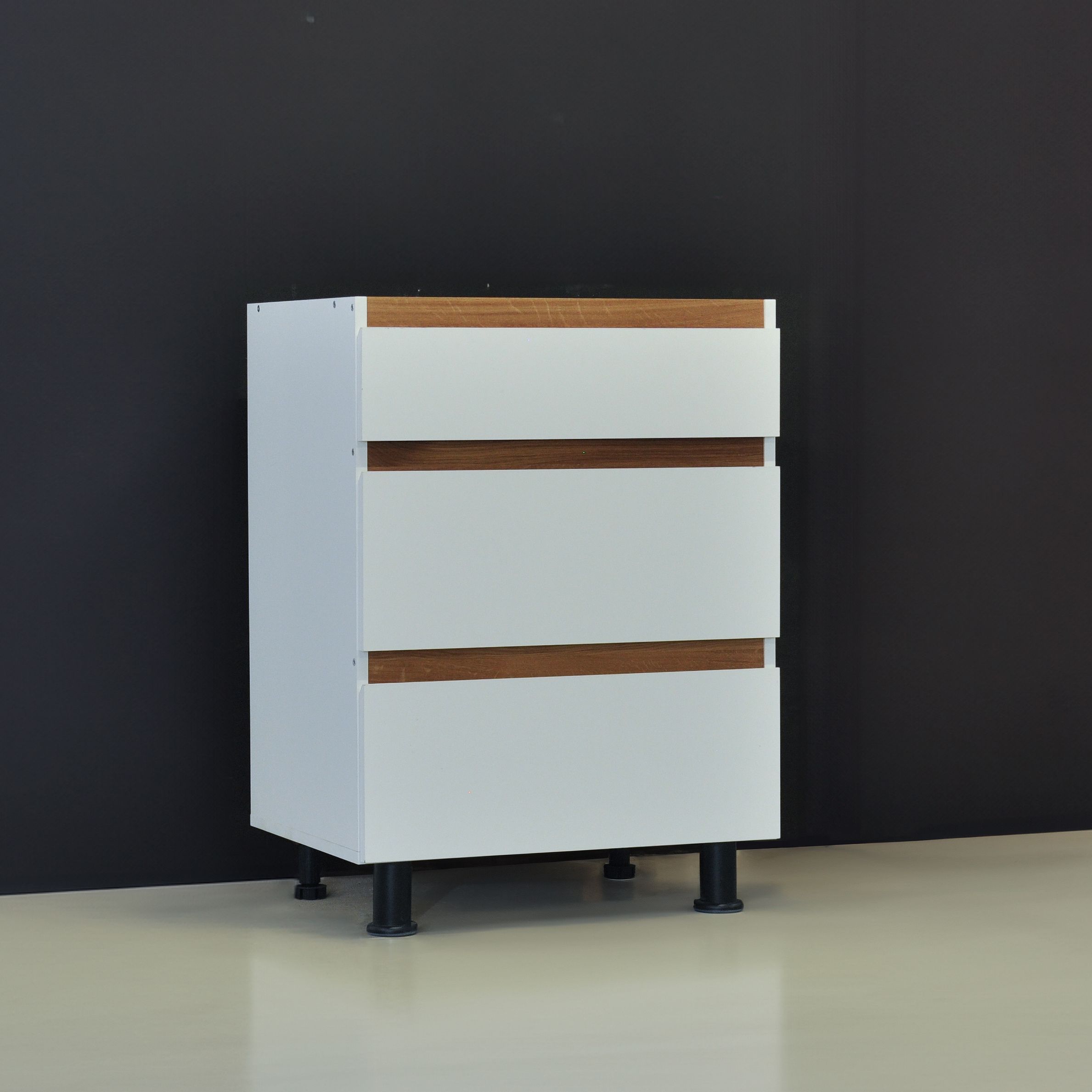 Конструкция кухонного модуля оснащена 3 ящиками: одним маленьким и двумя большими ящиками. Размеры шкафа под кухню в собранном виде (Ширина х Глубина х Высота, см) - 60х44.8х82.5 см, что позволит использовать его как в качестве небольшой кухонной тумбы, так и для создания полноценного кухонного гарнитура серии Валенсия. Вариант напольного кухонного модуля поставляется без столешницы.