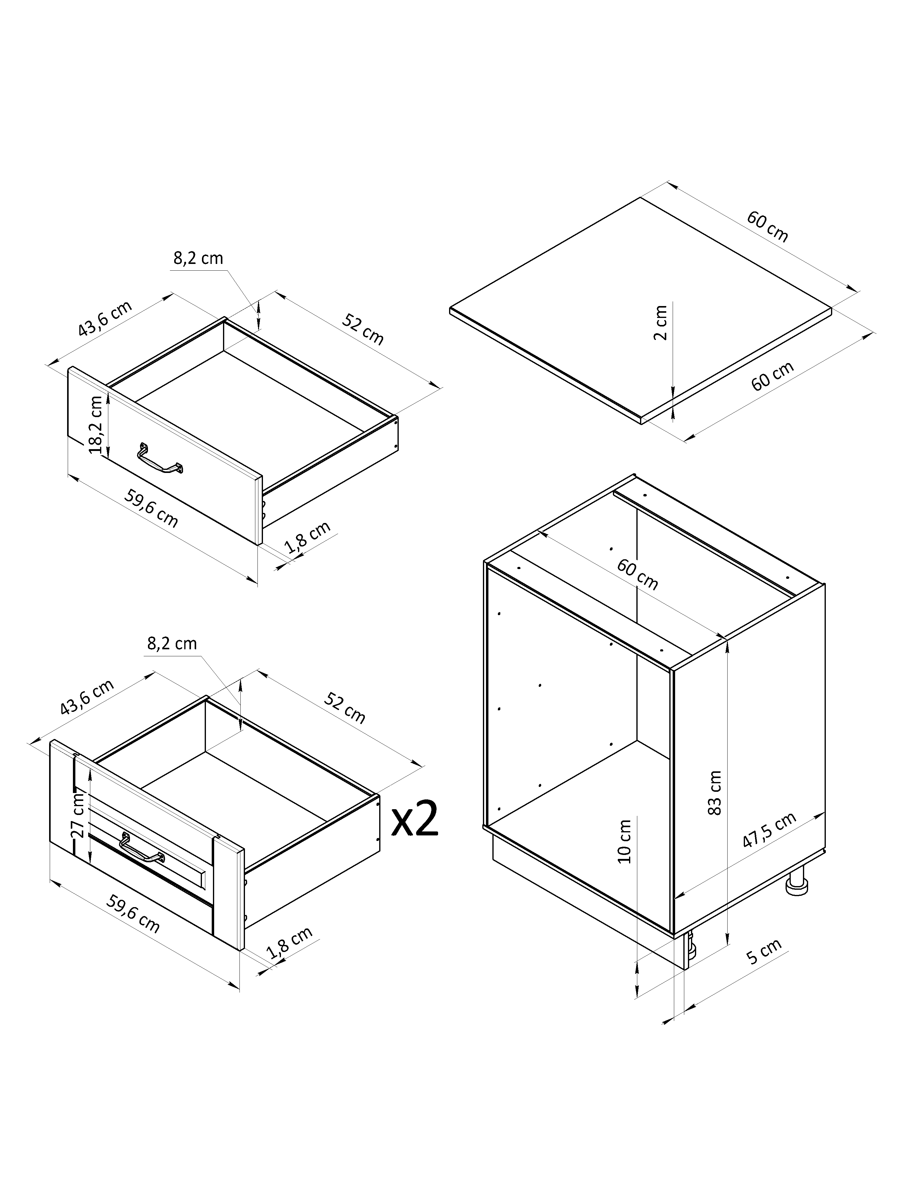 3 ящика (2+1 скрытый, белый)