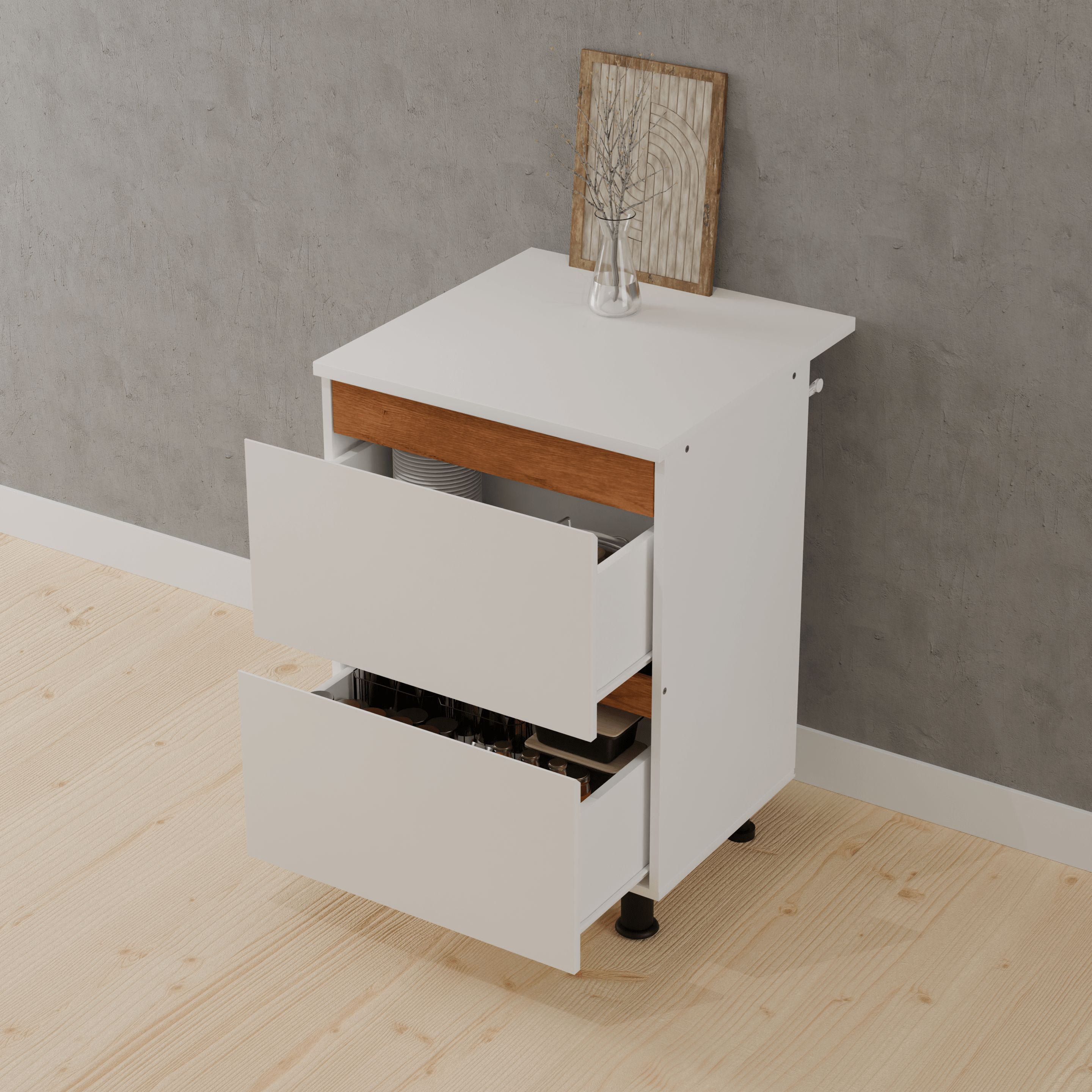 Конструкция кухонного модуля оснащена 3 ящиками: одним маленьким и двумя большими ящиками. Размеры шкафа под кухню в собранном виде (Ширина х Глубина х Высота, см) - 60х60х85 см, что позволит использовать его как в качестве небольшой кухонной тумбы, так и для создания полноценного кухонного гарнитура серии Валенсия. Вариант модуля кухни поставляется со столешницей размерами 60х60 см, толщина - 22 мм. Столешница выполнена с гладкими краями и кромками, что предотвращает случайные травмы и удары при использовании.