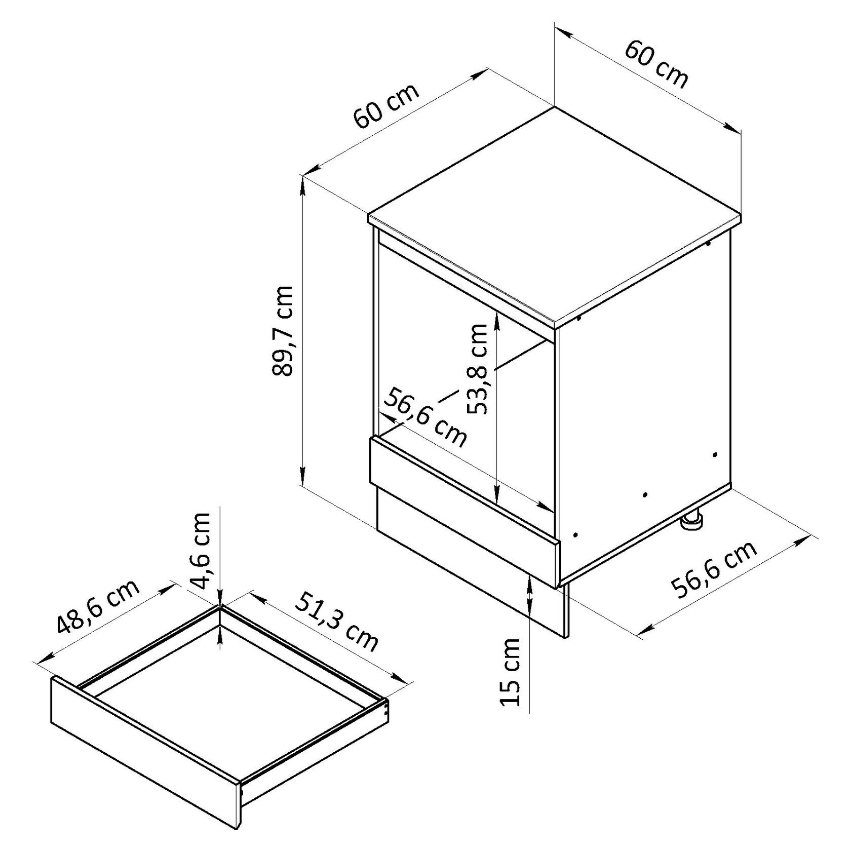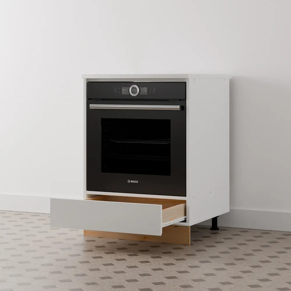 Создайте неповторимую кухню современного стиля модерн в светлых тонах с нашей модульной серией Виола.Современный стиль и универсальностьУниверсальный напольный кухонный модуль в современном стиле отличается лаконичным дизайном, что придает уникальность каждому элементу мебели.Конструкция панели под духовой шкаф оснащена открытой задней стенкой для монтажа необходимых коммуникаций и ящиком в нижней части. Размеры кухонного шкафа в собранном виде (Ширина х Глубина х Высота, см) - 60х60х85 см, что позволит использовать его как в качестве небольшой кухонной тумбы, так и для создания полноценного кухонного гарнитура серии Валенсия. Ящик выполнен на металлических роликовых направляющих и выдерживает нагрузку до 5 кг. Вариант модуля под духовой шкаф поставляется со столешницей размерами 60х60 см, толщина - 22 мм. Столешница выполнена с гладкими краями и кромками, что предотвращает случайные травмы и удары при использовании.Полный кухонный гарнитурСерия Виола включает различные напольные и настенные модули, которые можно легко комбинировать между собой, создавая индивидуальный и функциональный кухонный гарнитур под собственные потребности. Создайте свою кухню мечты, или кухню-столовую мечты, или кухню-студию мечты - всё это вместе с нашими кухонными модулями.Удобное хранениеЭргономичная конструкция