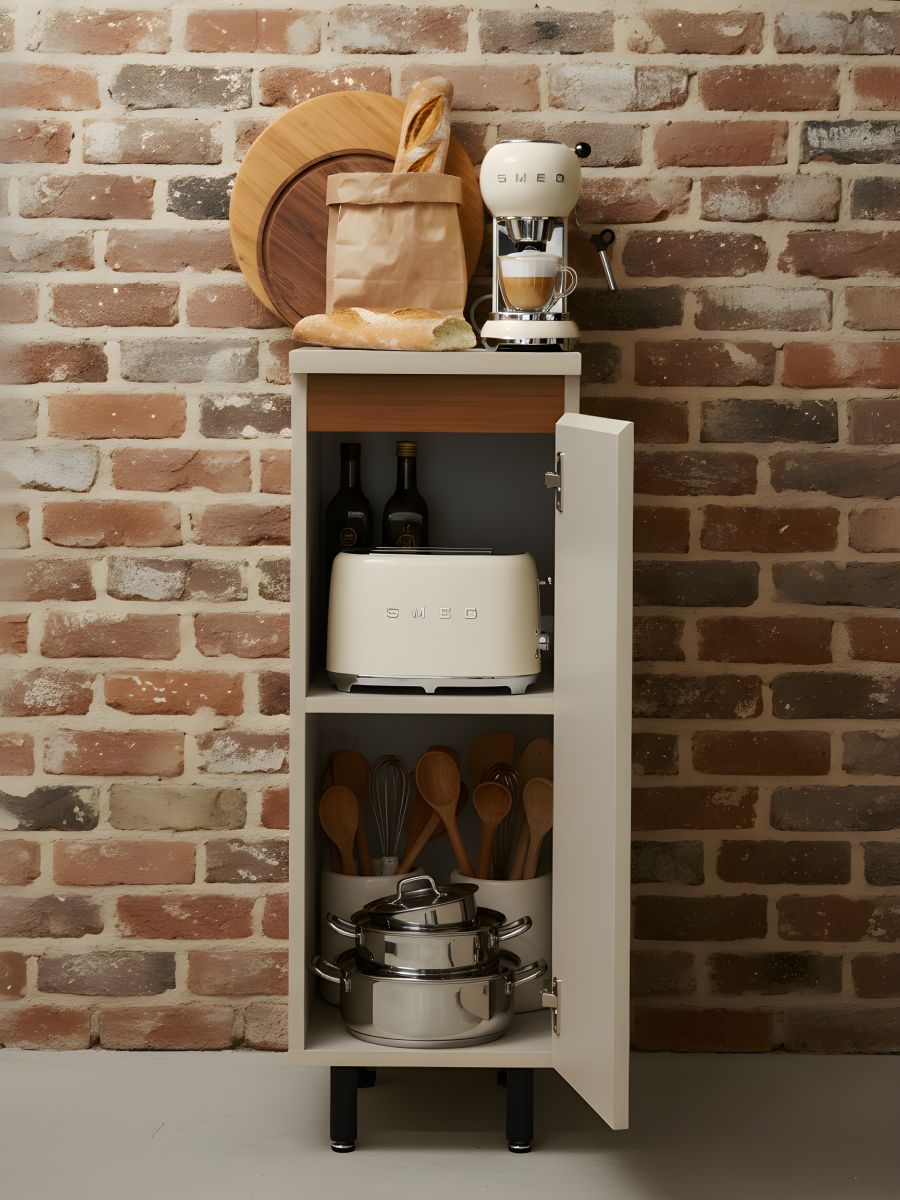 Встроенные отсеки для хранения позволяют удобно разместить специи, бутылки, кухонные принадлежности или бытовую химию, обеспечивая порядок и лёгкий доступ к необходимым вещам.