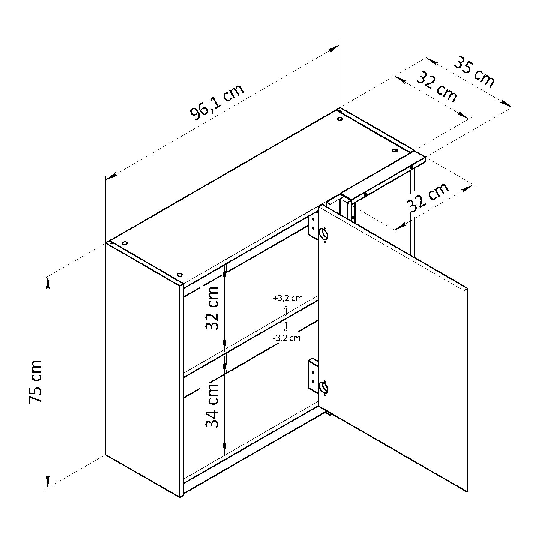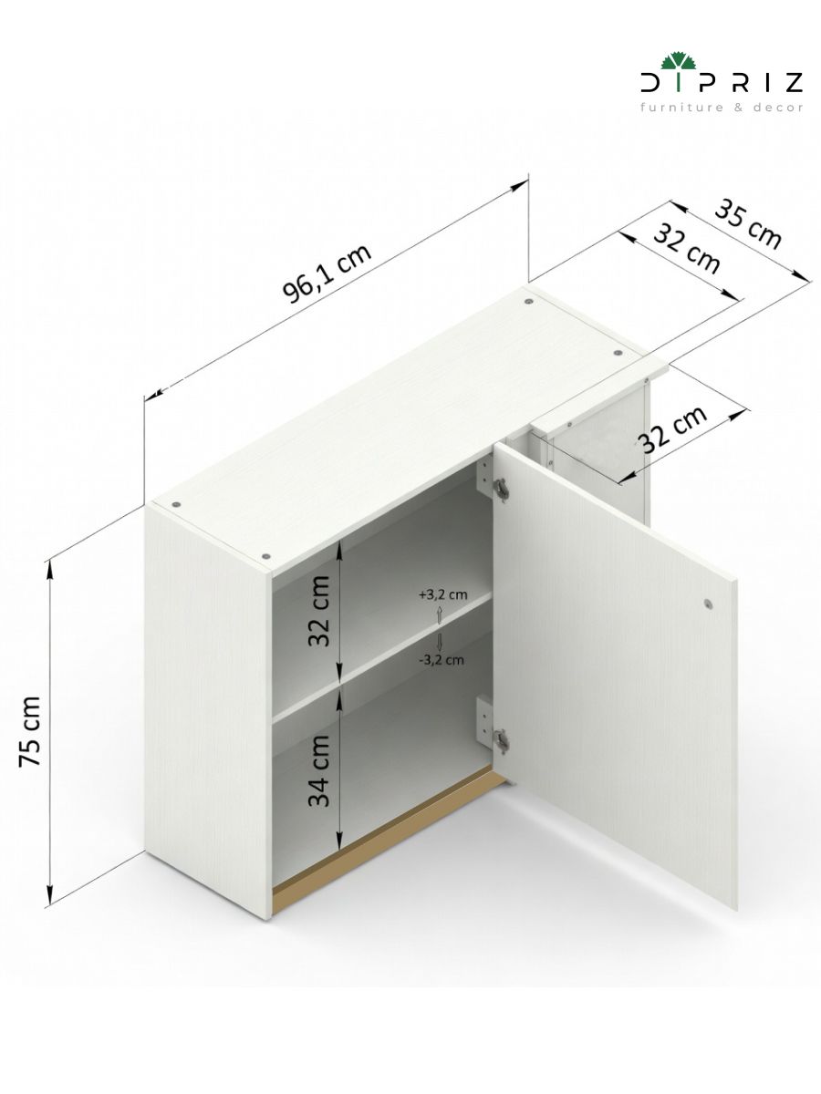 расстояние от полки до верха модуля — 32 см