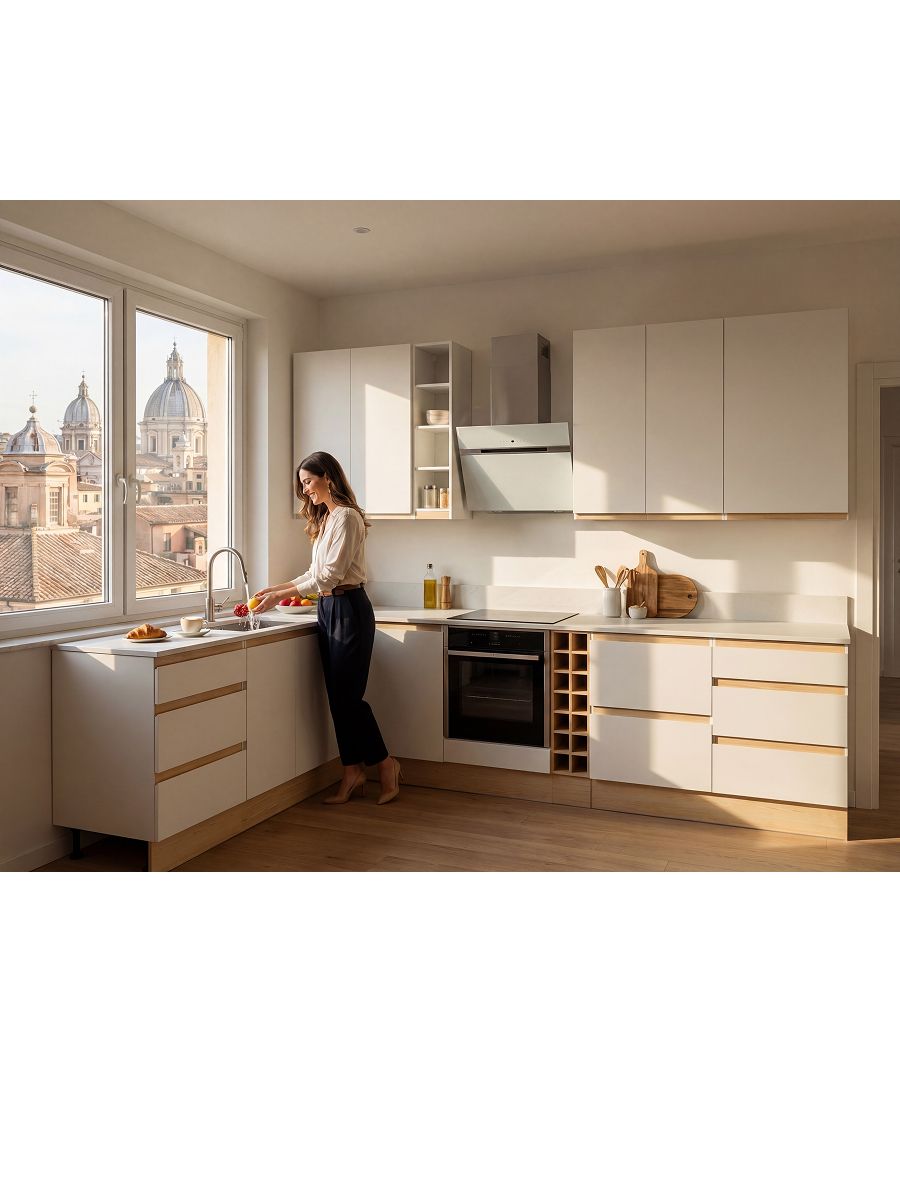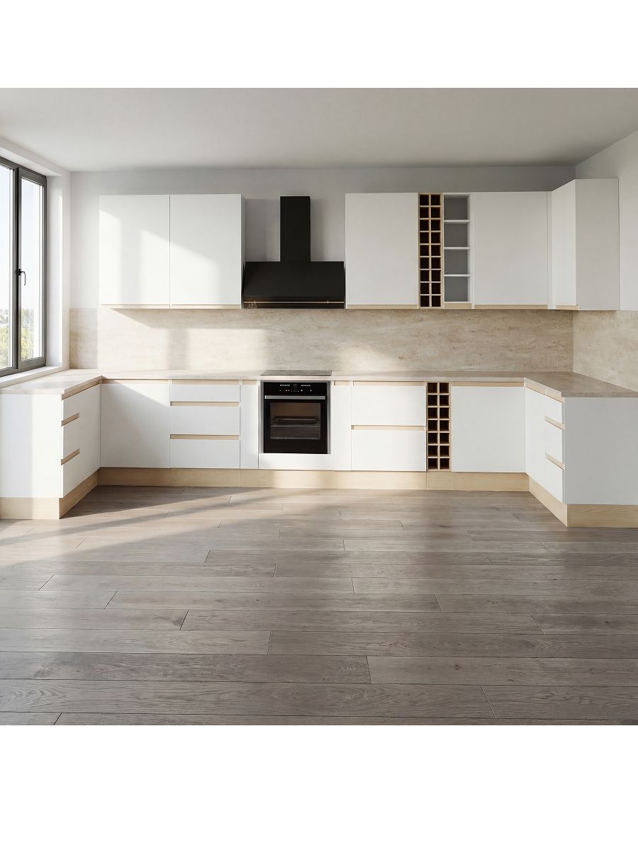 Навесной модуль угловой для кухни «Виола» — универсальное решение в лаконичном скандинавском стиле. Белый цвет и продуманная геометрия фасадов с интегрированными ручками подчеркивают современность, визуально увеличивают пространство и вносят ощущение чистоты и уюта. Главная особенность этого модуля — его универсальность: изделие превосходно подходит не только для кухни, но и для ванной или прихожей.
