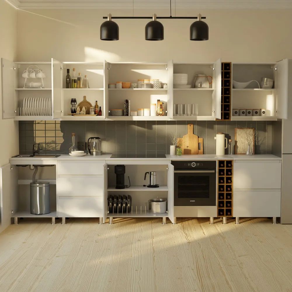Серия Севилья включает различные напольные и настенные модули, которые можно легко комбинировать между собой, создавая индивидуальный и функциональный кухонный гарнитур под собственные потребности. Создайте свою кухню мечты, или кухню-столовую мечты, или кухню-студию мечты - всё это вместе с нашими кухонными модулями Севилья.