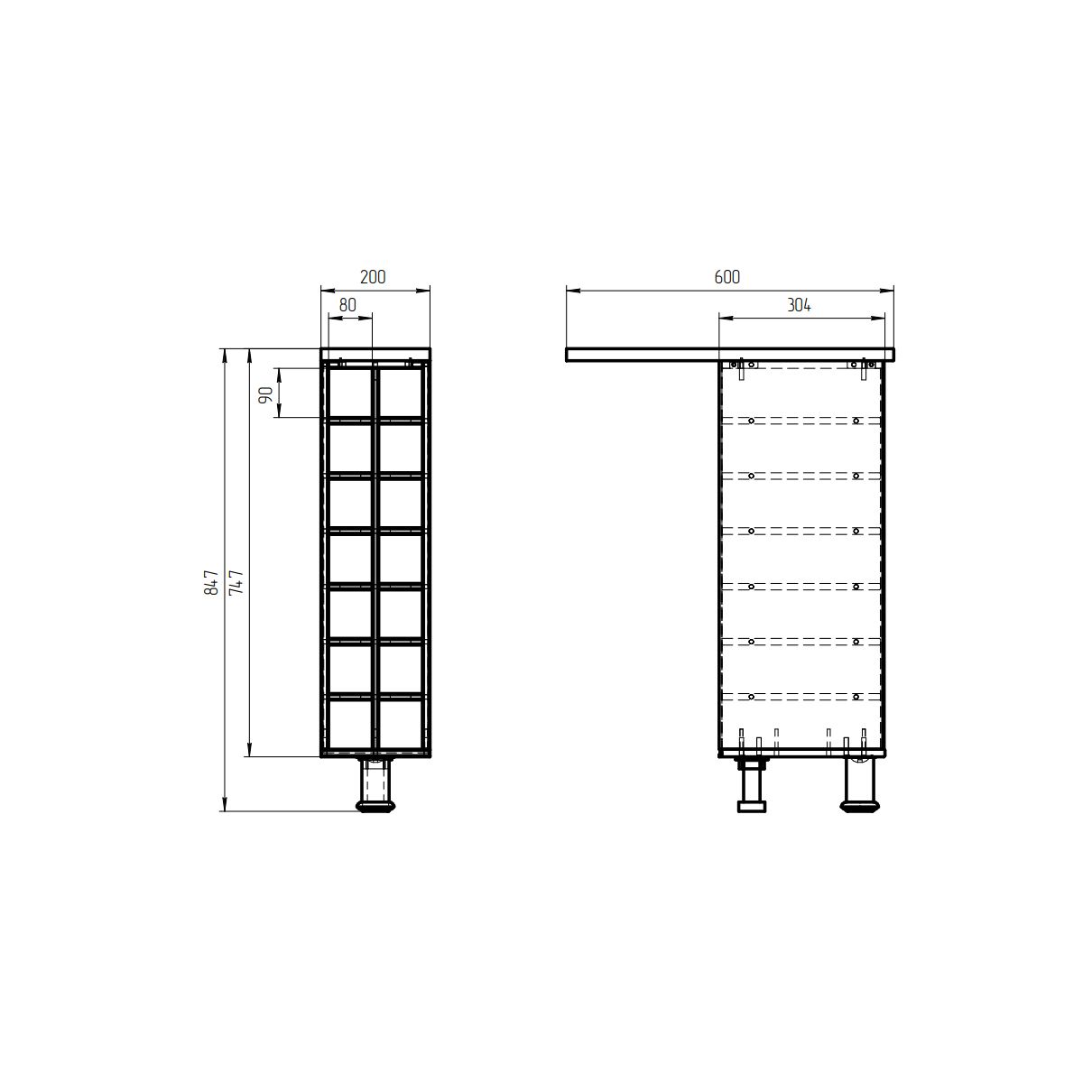 - Прочная столешница - Столешница из прочного белого ЛДСП размером 20х60 см, толщиной 22 мм выдерживает нагрузку в диапазоне 30-40 кг, обеспечивая прочность и долговечность при использовании.