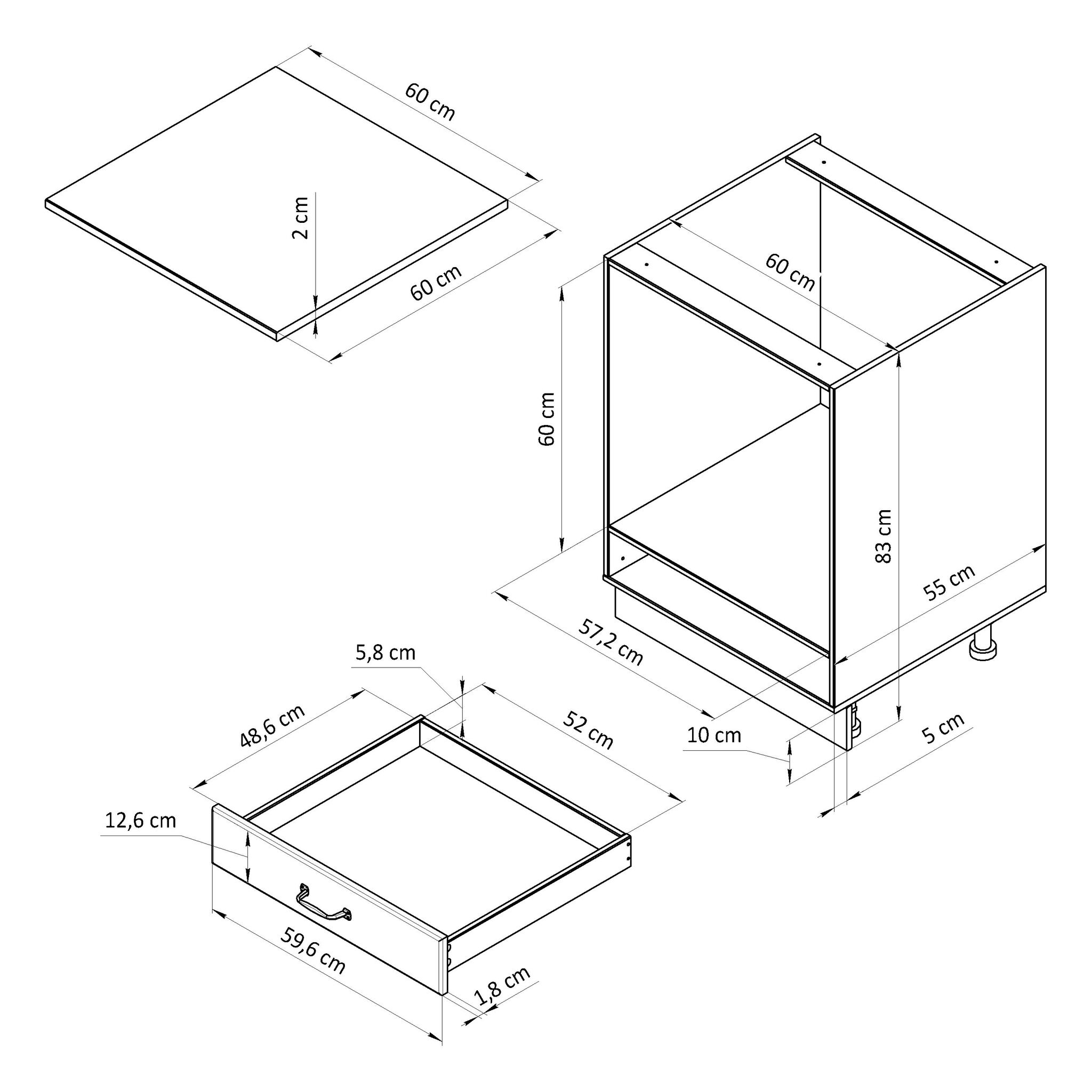 - Модуль оснащён выдвижным ящиком, который предоставляет удобное место для хранения кухонных принадлежностей, обеспечивая легкий доступ к необходимым вещам.