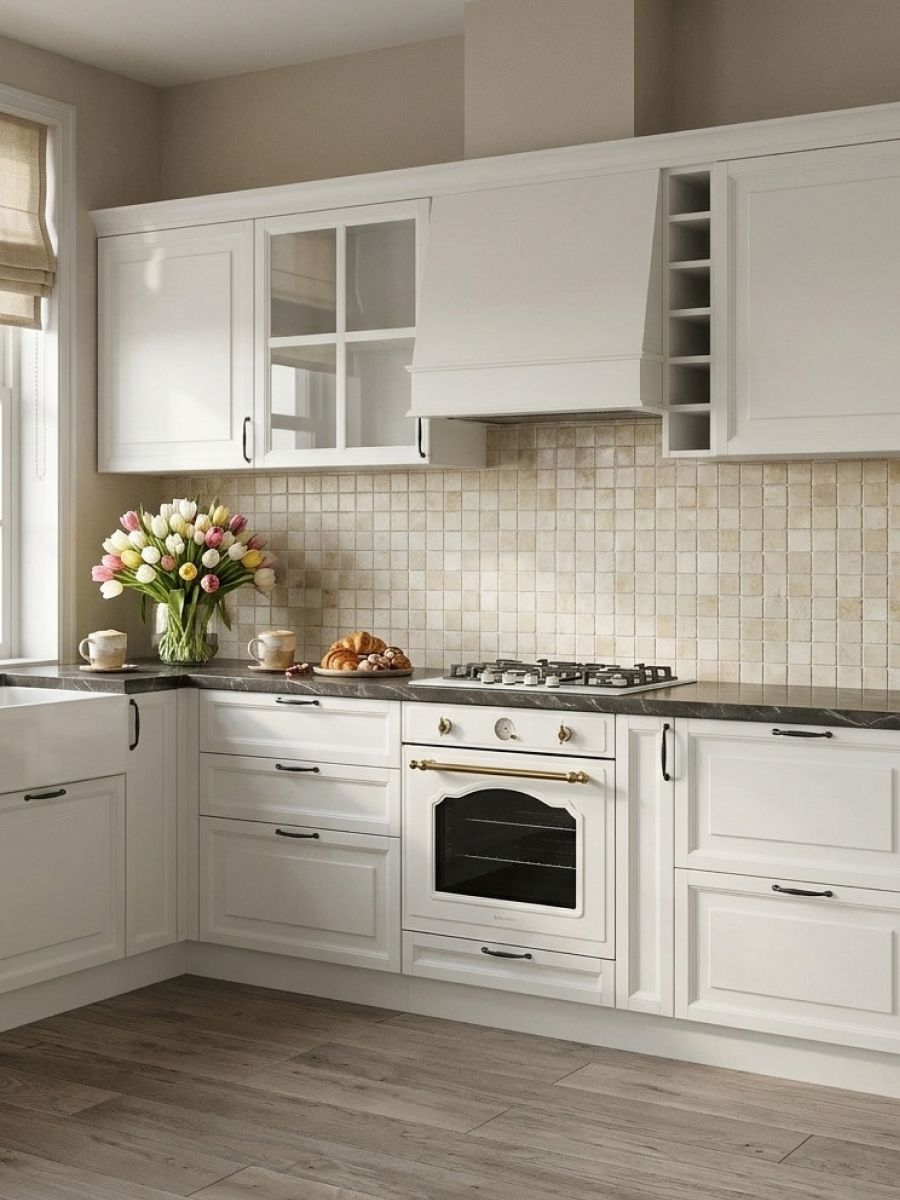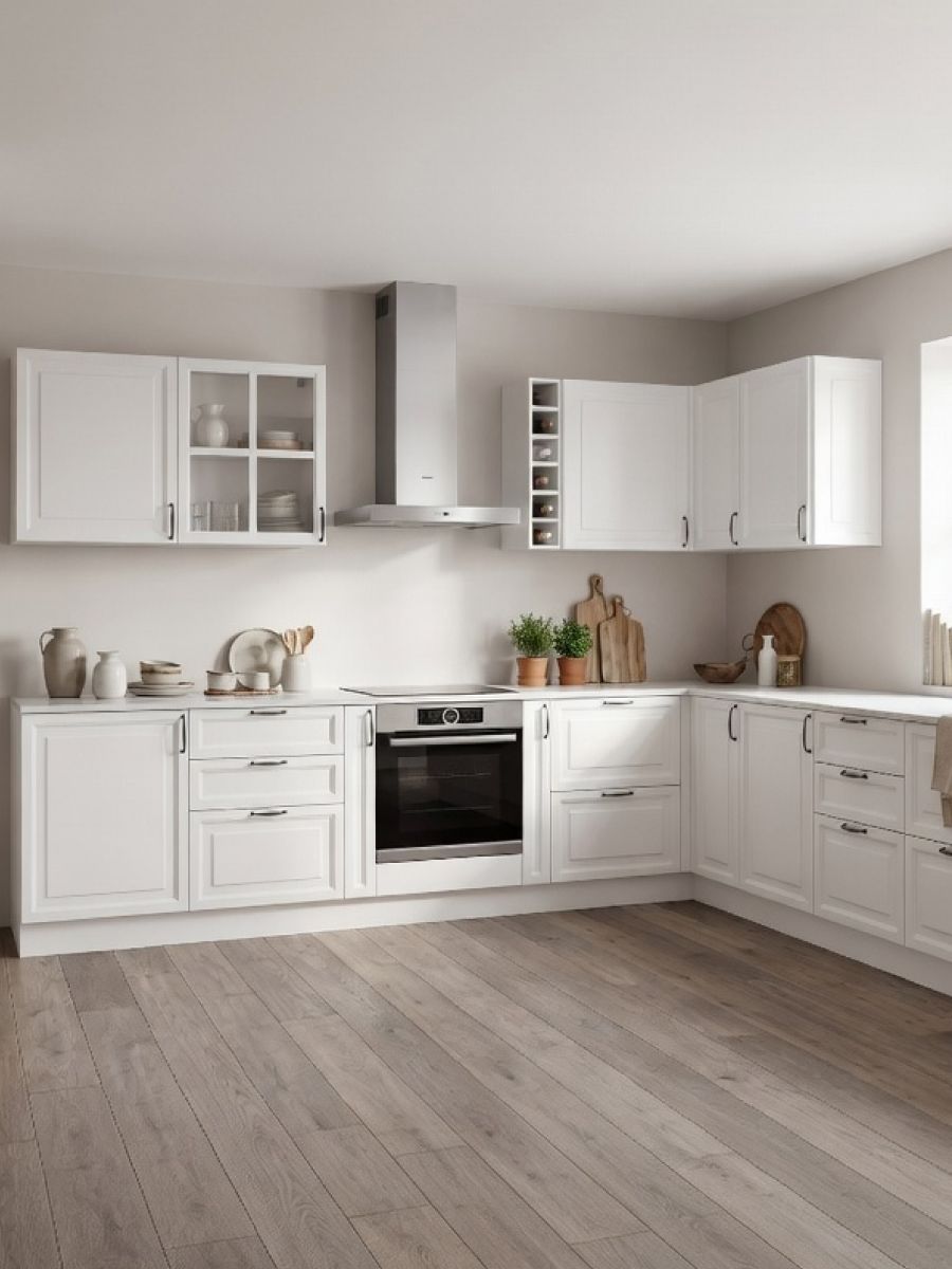 Прочный и стильный шкаф идеально дополняет современный интерьер благодаря сочетанию лаконичного белого фасада из натурального дерева и практичному корпусу из качественной ЛДСП. Примерно 60 см в ширину позволяет удобно расположить его над столешницей, обеспечивая дополнительное хранение.