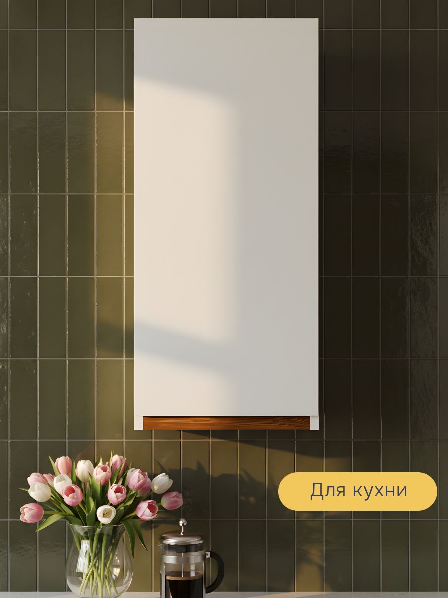 - Компактность и универсальность: Узкая ширина 30 см делает этот навесной модуль идеальным для небольших кухонь, рабочих зон над мойкой или варочной поверхностью, а также для организации угловых пространств.