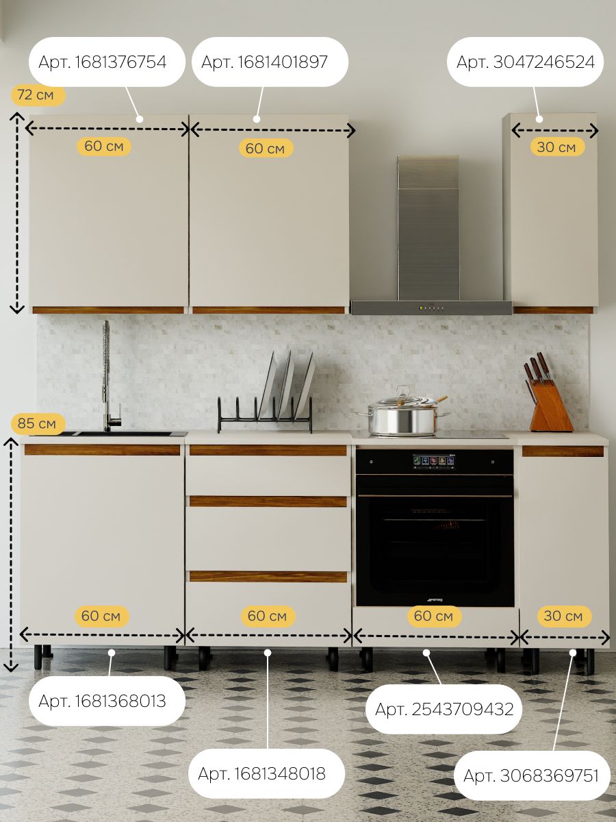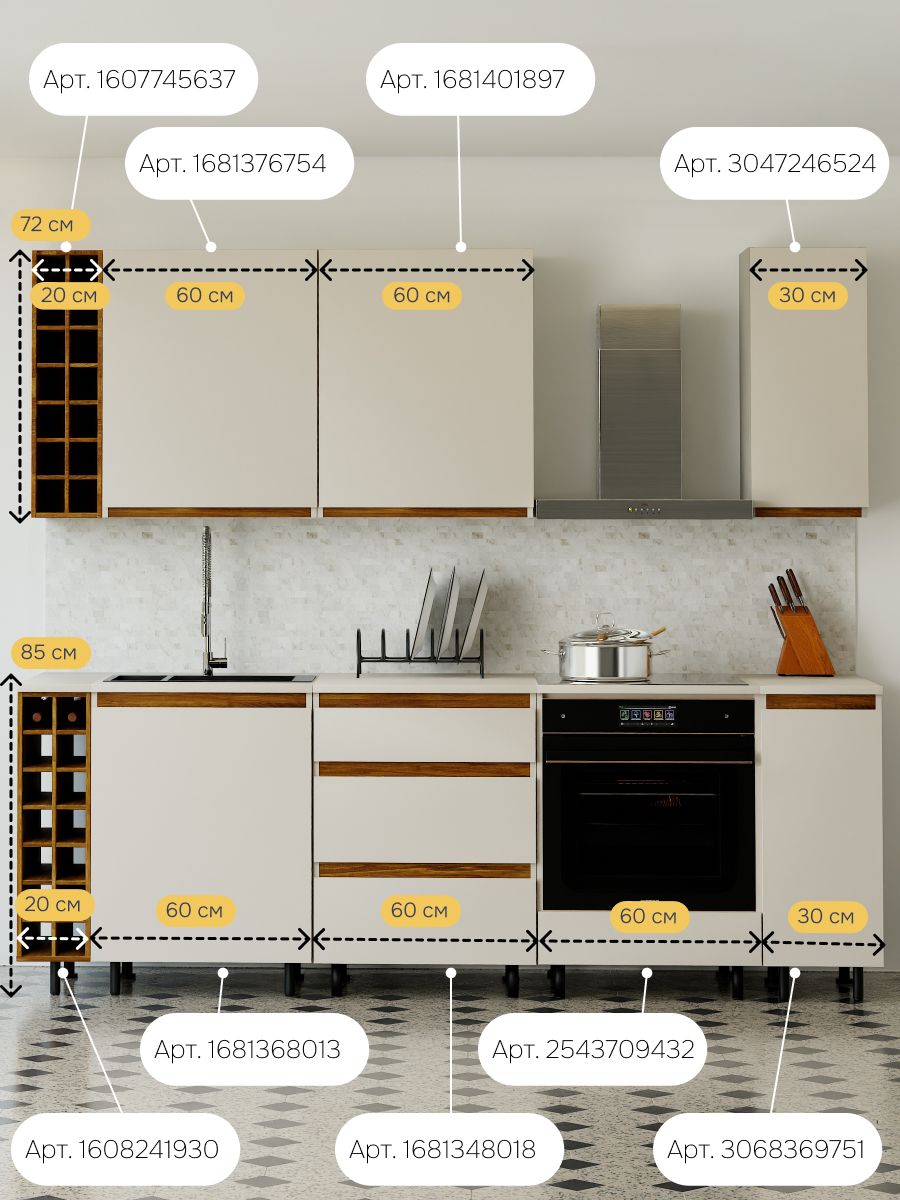 - Идеальная компактность: Узкая ширина 25 см позволяет модулю органично вписаться в самое ограниченное пространство — над рабочей столешницей, в узком простенке или в составе составной композиции.