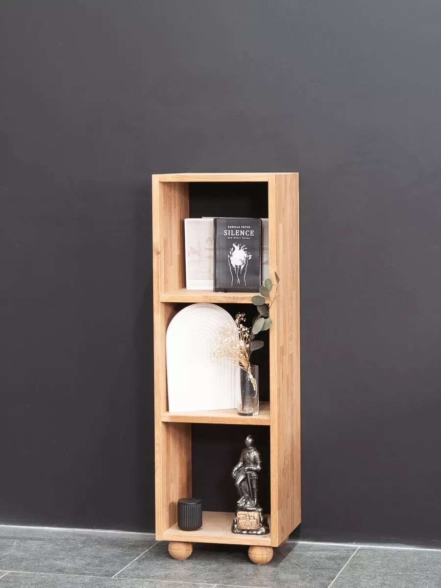 Дизайнерское решение хранения в стиле лофт. Стеллажи серии Эдгар выполнены в современном стиле лофт, который сочетает в себе индустриальную эстетику и уют натуральных материалов. Простые линии и минималистичный дизайн идеально дополнят любой интерьер, придавая ему изысканность и характер. Экологичные материалы и отделка. Для изготовления стеллажей Эдгар используется натуральный дуб, что обеспечивает прочность и долговечность изделий. Поверхность дуба покрыта маслом, что подчеркивает естественную текстуру дерева и защищает его от внешних воздействий. Мы уделяем особое внимание экологичности, используя только безопасные и природные материалы. Разнообразие размеров. Серия Эдгар включает стеллажи трех размеров: с тремя, четырьмя и шестью нишами. Это позволяет выбрать наиболее подходящий вариант в зависимости от ваших потребностей и пространства, доступного в вашем доме. Комплект дубовых ножек в подарок. В комплекте со стеллажами Эдгар идут дубовые ножки, которые можно установить по желанию. Это дает возможность адаптировать стеллажи под ваш интерьер и обеспечить им дополнительную устойчивость. Модульность серии Эдгар. Серия Эдгар включает не только стеллажи, но и полки, комоды, а также тумбы для ТВ. Все элементы можно комбинировать между собой, создавая уникальные и функциональные решения для хранения в гостиной, детской, спальне, ванной или коридоре. Модульность позволяет максимально эффективно использовать пространство и организовать хранение в соответствии с вашими потребностями. Цветовые варианты. Серия Эдгар представлена в трех цветах: натуральный дуб, темный дуб и черный дуб. Это разнообразие позволяет выбрать стеллажи, которые идеально впишутся в ваш интерьер, будь то светлое и просторное помещение или уютное и темное пространство.