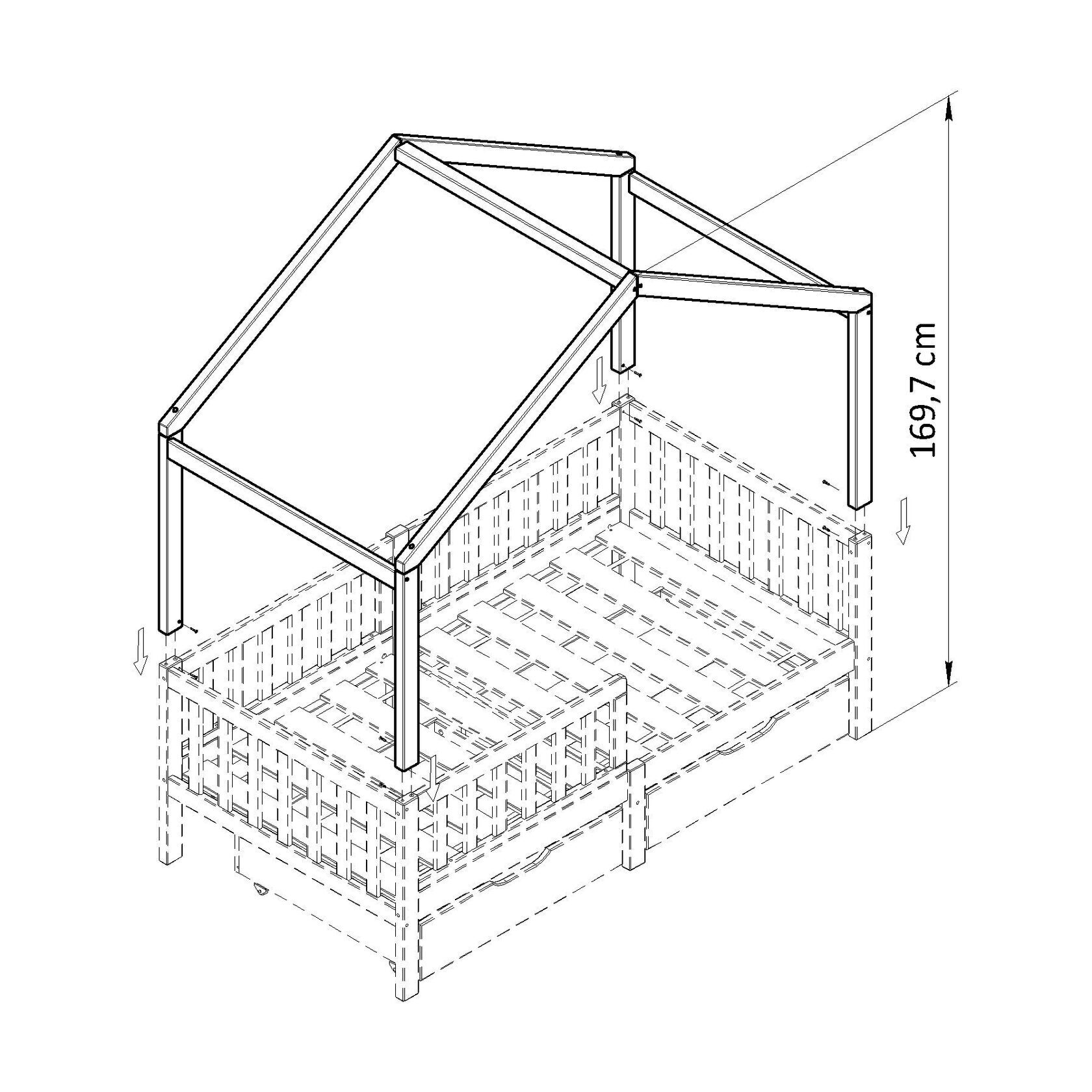 Надстройка к кровати Фиона из массива сосны - простой способ превратить обычную кровать в сказочное спальное место. И для этого Вам больше не нужно приобретать новую кровать! Достаточно заказать надстройку к нашей кровати-софа. Надстройка легко устанавливается и легко снимается, если в ней больше нет необходимости. Благодаря надстройке к кровати можно создать праздничную атмосферу в вашей комнате. Фонарики или гирлянды создадут уют в спальне и сделают кровать домик любимым местом для отдыха. Надстройка кровати домика изготовлена из качественной сосны и покрыта белым воском на водной основе , который эффективно защищает древесину от негативного внешнего воздействия.