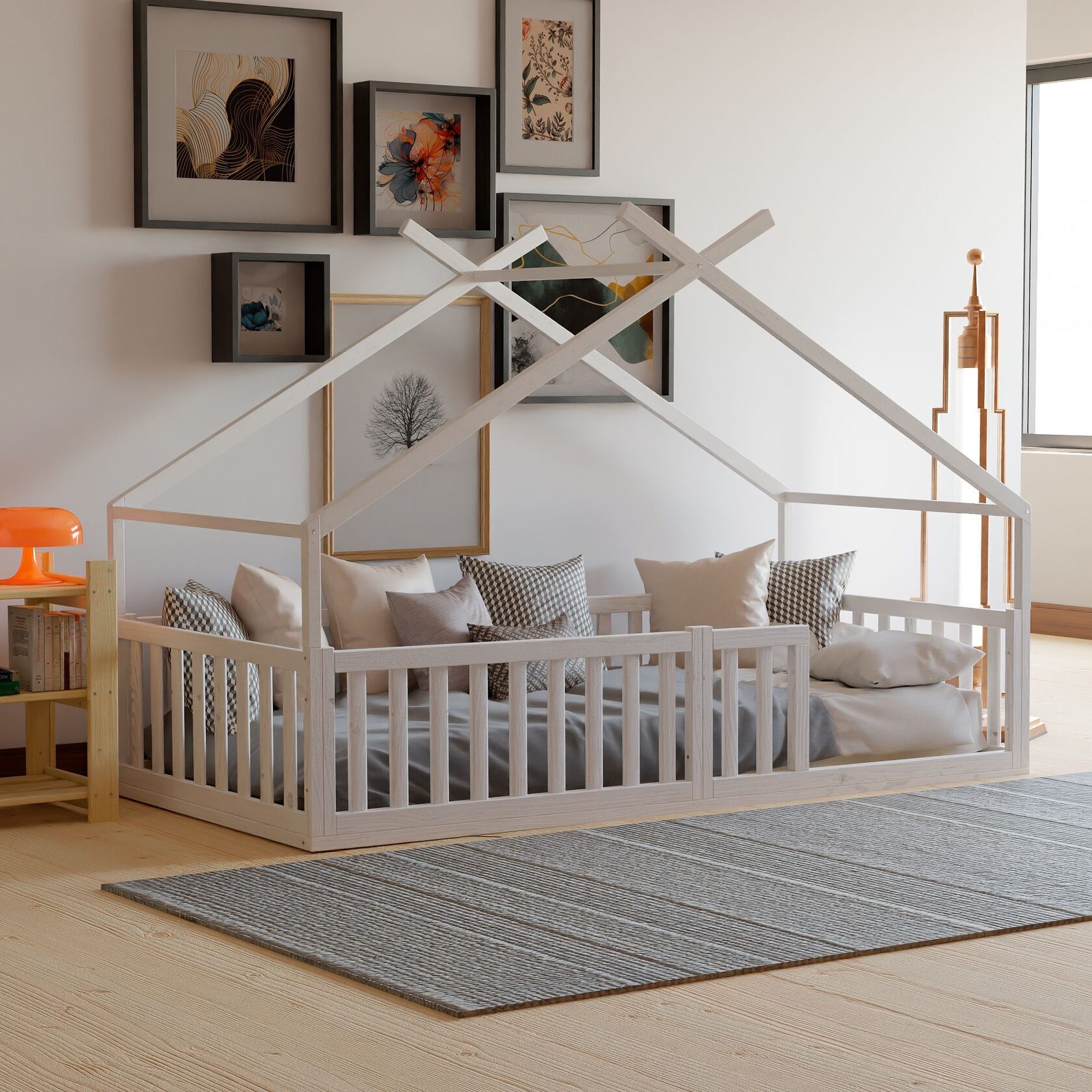 Надстройка крыша для односпальной кровати Афина 90х200 из массива сосны от белорусского производителя ООО «Диприз» выполнена в Скандинавском стиле в белом цвете. Крыша для кровати поставляется отдельно от кровати вместе с полным комплектом фурнитуры и инструкцией для сборки и установки на кровать. Размер надстройки в собранном виде (Длина х Ширина х Высота, см) - 205.5х95.6х96.9 см. Прочно крепится к кровати, не шатается и не скрипит, имеет гладкие края. Стропила крыши расположены под углом 120° друг к другу. Односпальная кровать Афина доступна к покупке в нашем каталоге (SKU: 1596308794). Уникальной особенностью кровати 90х200 является отсутствие ножек (т.е. кровать напольная) и наличие бортиков безопасности. Лаконичный дизайн позволяет удачно вписывать ее в любое помещение, будь то спальня, детская комната или гостевой дом. Конструкция односпальной кровати стабильна, безопасна и устойчива, ввиду отсутствия ножек. Кровать включает в себя 3 бортика безопасности размером 99,8х40 см (боковые стенки), 2 бортика размером 95,6х40 см (передняя и задняя стенки), бортик 31,6х40 см (у калитки), а также настил из массива сосны размером 90х200 см. Максимально допустимая нагрузка 100 кг на одно спальное место позволяет использовать ее как детскую кровать, подростковую кровать, также в качестве односпальной кровати для взрослых. Бортик безопасности надежно защитит спящего от травмирования. Размер спального места – 90х200. Дополнительно калитку-бортик к кровати Афина для создания полностью закрытой кровати можно докупить отдельно (SKU: 1596439257). Также возможно докупить 2 варианта крыши надстройки к кровати Афина для дополнительного украшения и дополнения внешнего вида Вашей комнаты (SKU: 1596481341 и SKU: 1598285488). Кровать изготовлена из натуральной древесины - массива сосны, она не скрипит, не пахнет краской, а наполняет помещение тонким и приятным ароматом хвойного дерева. Покрыта натуральным белым укрывистым воском на водной основе, который сохраняет все полезные свойства дерева. Односпальную кровать с бортиками легко собрать за счет полного набора фурнитуры для сборки, который поставляется вместе с кроватью. В комплекте идёт подробная иллюстрированная инструкция, которая поможет легко и быстро собрать кровать. Изделие укомплектовано настилом под матрасы (матрас не входит в комплект, докупается отдельно). Рекомендуемый размер матраса 90х200, макс. высота матраса до 20 см. Возможна установка бортика на правую и левую сторону во время сборки.