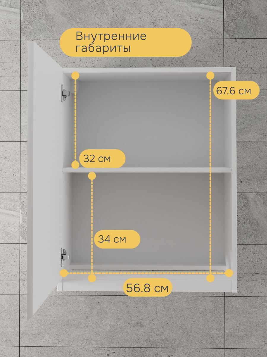 Конструкция кухонного модуля оснащена распашной дверью и вместительной полкой, которая может быть установлена в 3 положениях по высоте. Имеет дно с открытым пространством для размещения сушки над раковиной, чтобы влага не оставалась внутри мебели. Размеры кухонного шкафа в собранном виде (Ширина х Глубина х Высота, см) - 60х32х75 см, что позволит использовать его как в качестве небольшого подвесного шкафа для сушки посуды на кухню, так и для создания полноценного кухонного гарнитура серии Севилья.