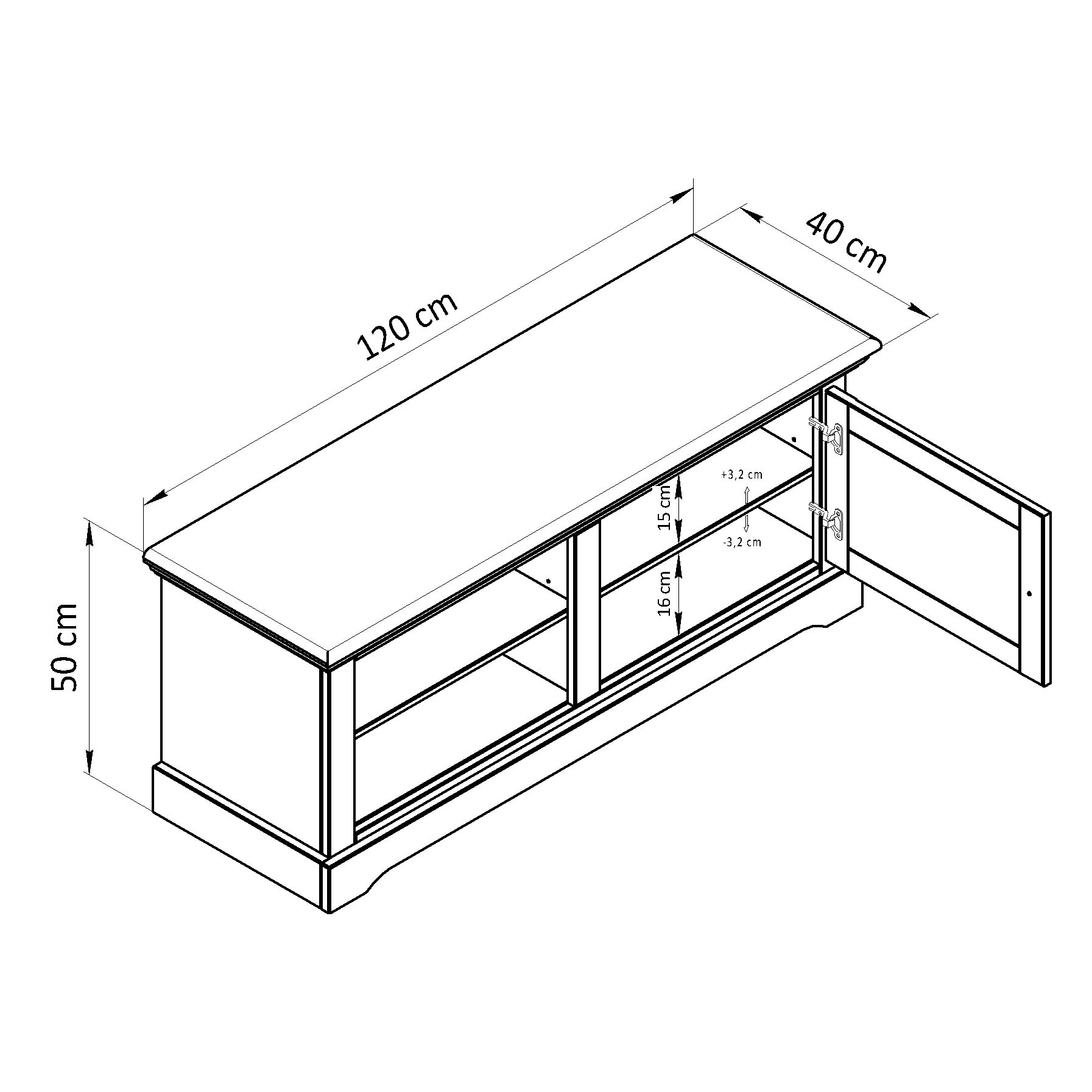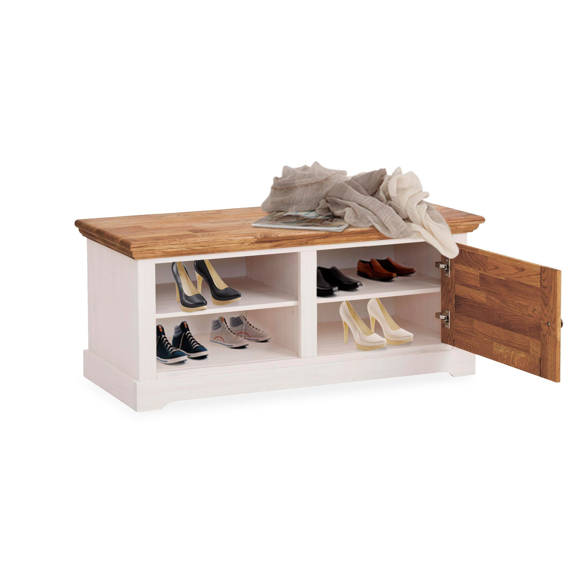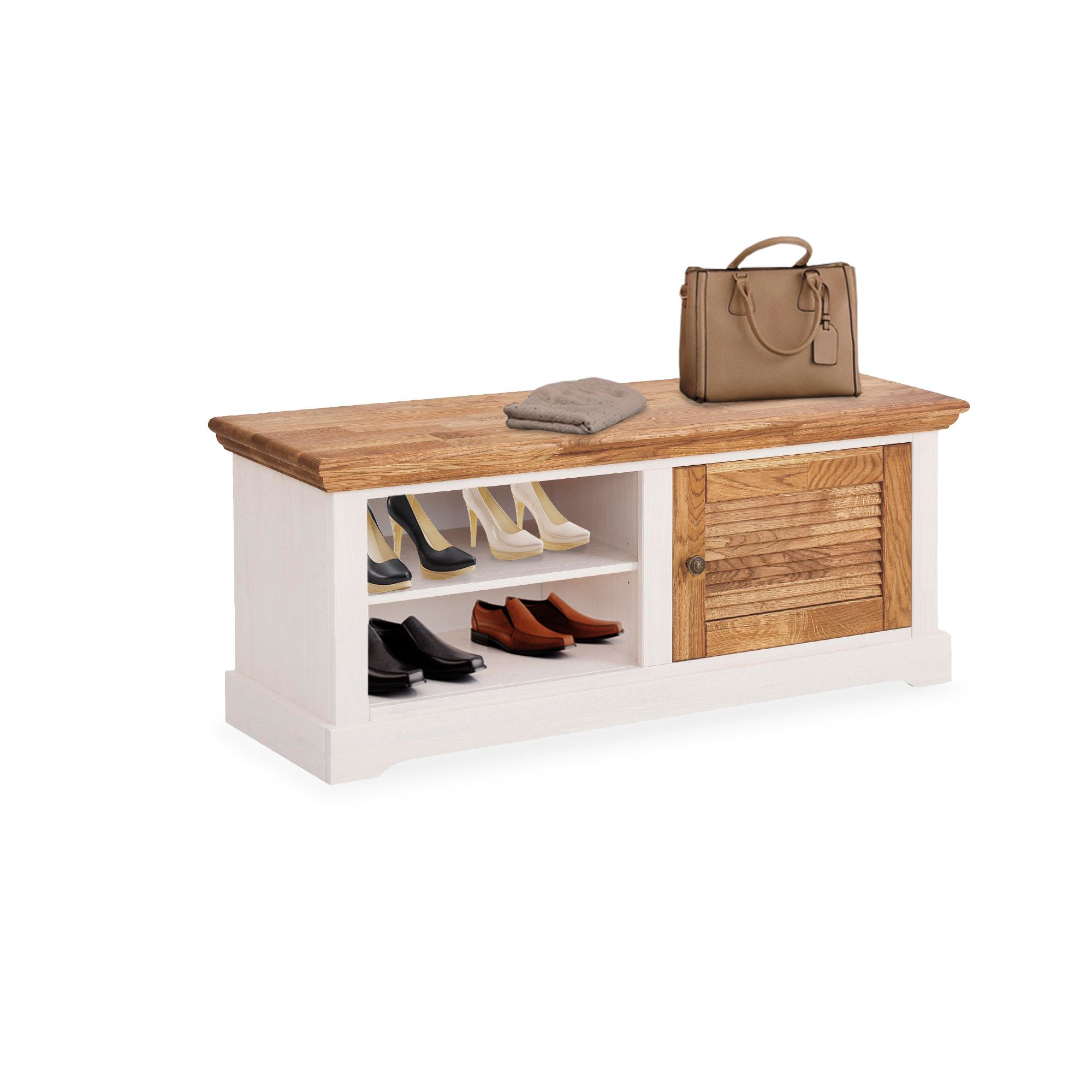 Функциональность: скамья с 1 дверью и 2 съемными полками, которые легко переставить вверх или вниз.