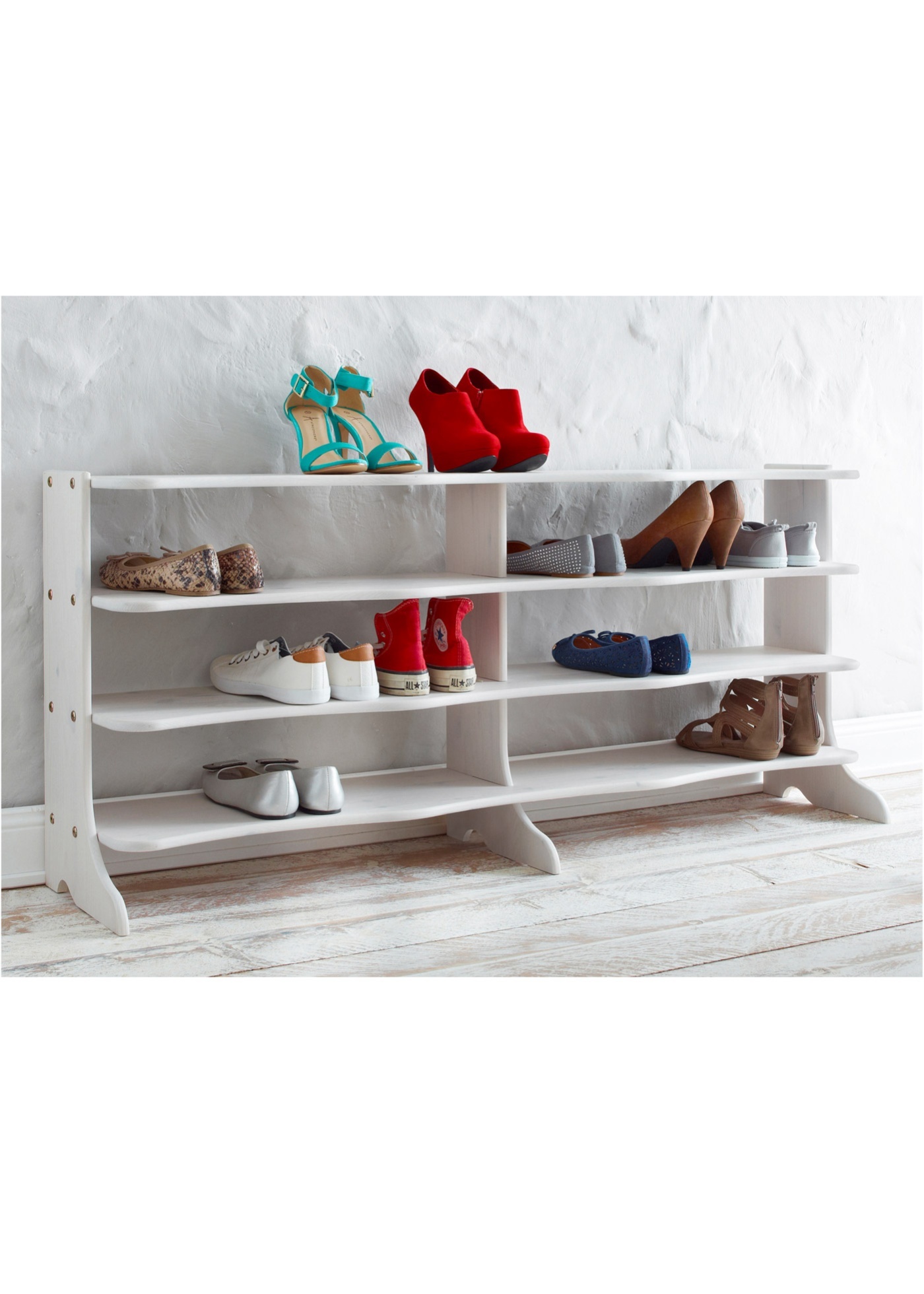 В полке для обуви на 20 мест можно аккуратно разместить несколько пар обуви, и они всегда будут под рукой. Благодаря своим размерам эта полка для хранения обуви особенно подходит для небольших и узких помещений, например, для прихожих. Прочный предмет мебели для хранения обуви изготовлен из массива дерева, от белорусского производителя мебели "Диприз". Полка для обуви Твист предлагает много места для вашей любимой обуви, даже если места мало. Собрать полку для обуви легко в домашних условиях. Также к изделию прилагается подробная инструкция по сборке.