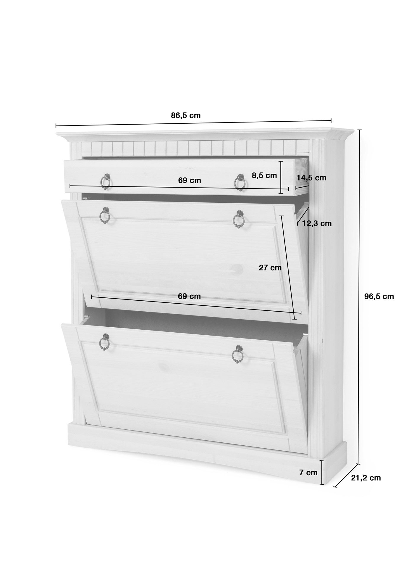 Выполненная из массива сосны, эта тумба для обуви не только предлагает удобное место для хранения обуви и других предметов, но и служит полноценным элементом интерьера прихожей. Благодаря белому цвету (за счет покрытия натуральным воском) обувница добавит элегантности и красоты Вашему помещению, сохранит приятный хвойный аромат и полезные свойства дерева. Это обеспечивает не только стойкость к внешним воздействиям, но и подчеркивает естественную красоту массива дерева. Фасад комода для обуви дополнен декоративными резными вставками, которые добавит изысканности в ваше помещение.