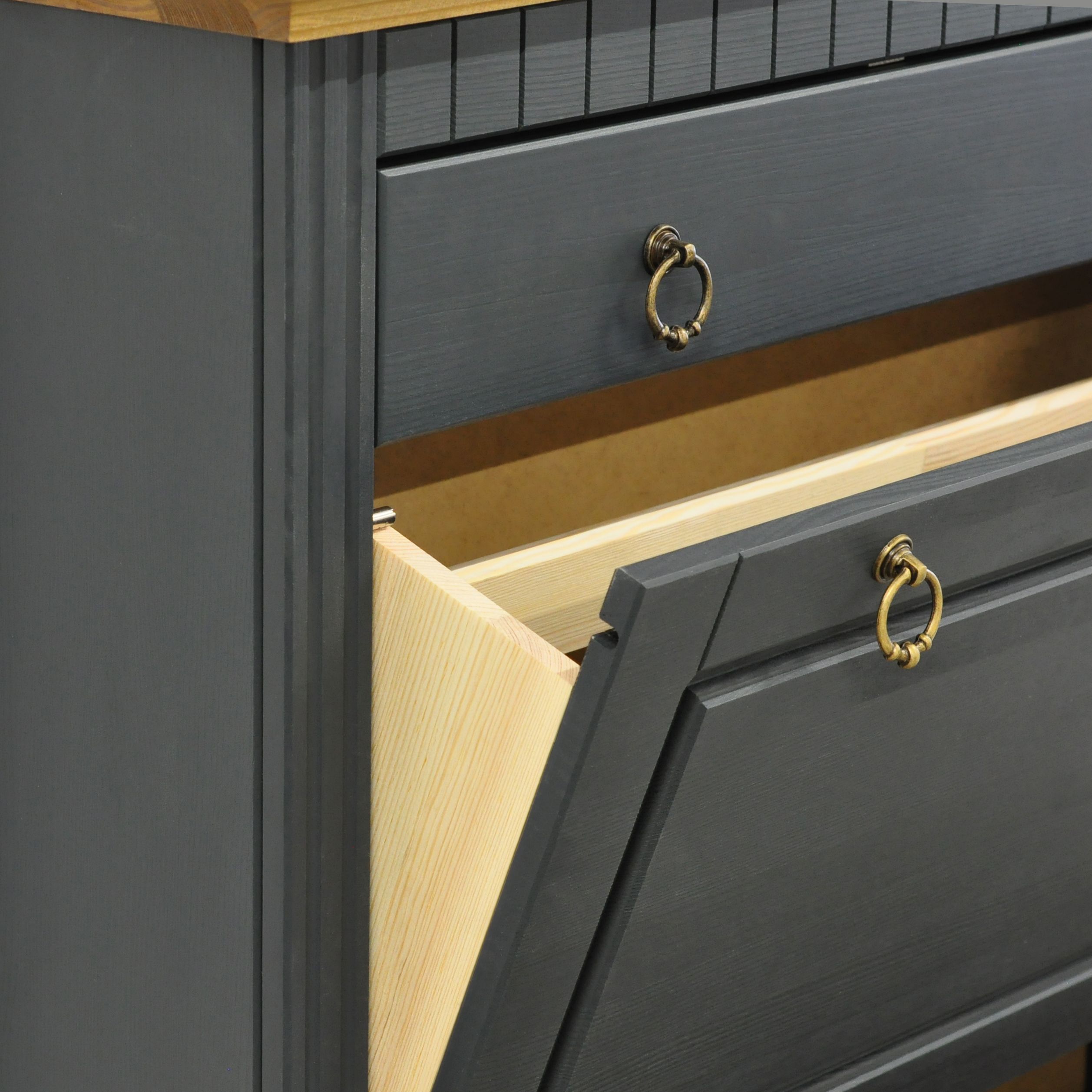 • Обувница по-настоящему прочная, что обеспечивается толщиной крышки и фасадов t=18 мм, фасада ящиков t=30 мм; толщина стенок, полика, стенок ящиков t=14 мм.