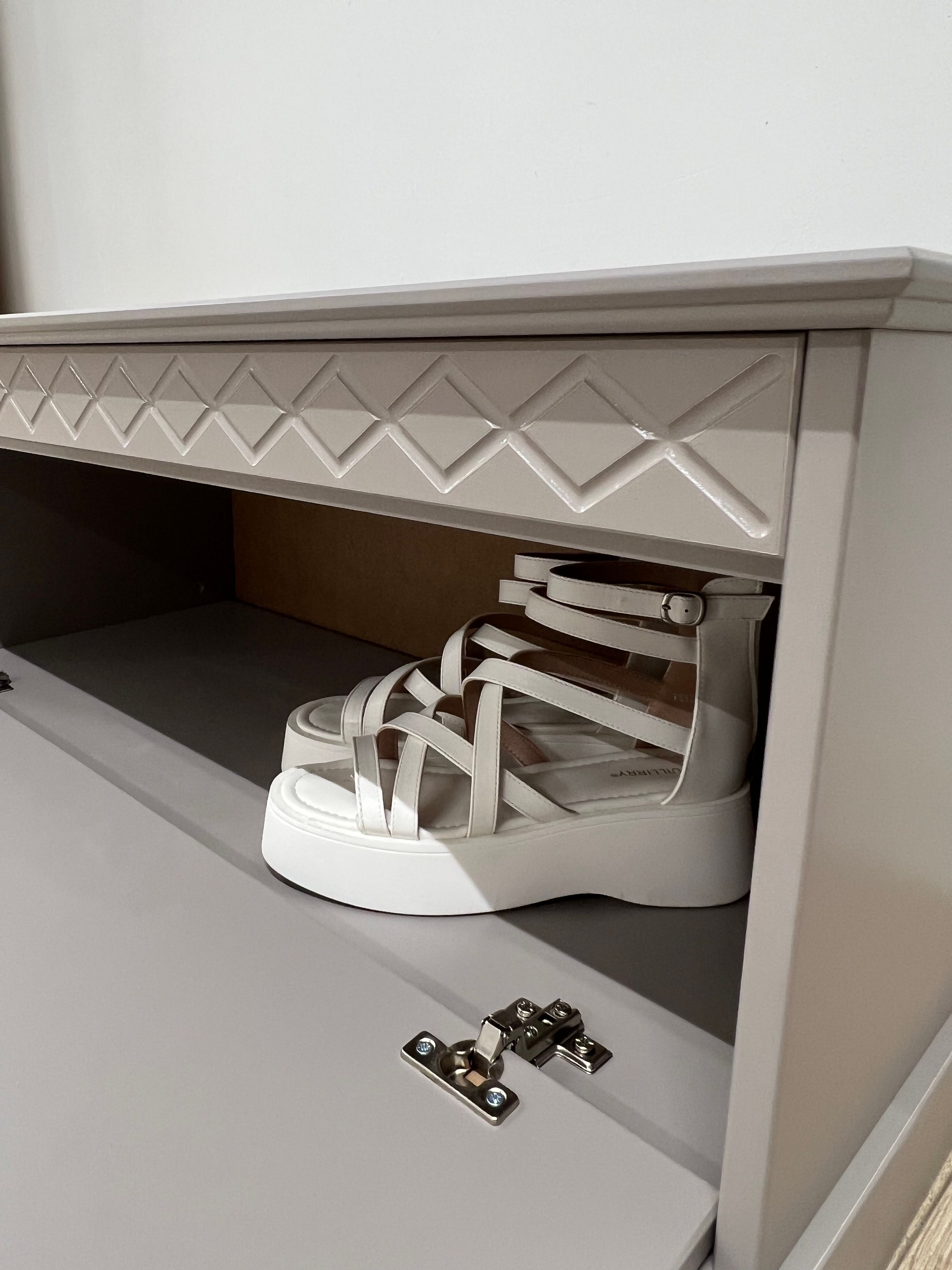 Обувница в прихожую с сиденьем Индра — это идеальное решение для тех, кто ценит порядок и комфорт в своем доме.Допустимо крепление к стене при помощи уголка для большей устойчивости, в комплекте используются декоративные металлические ручки. Поставляется в разобранном виде, легко собрать за счет понятной инструкции и фурнитуры в комплекте.