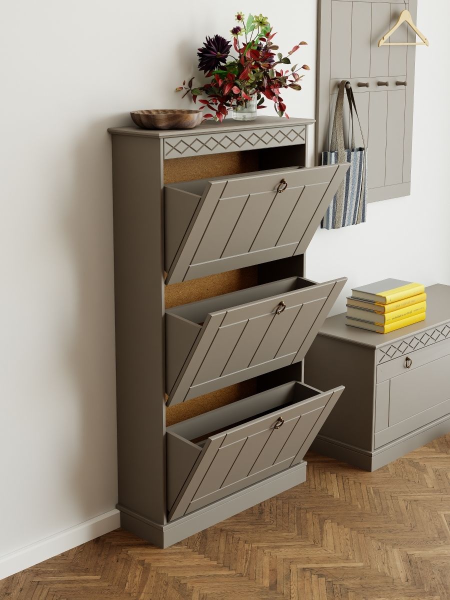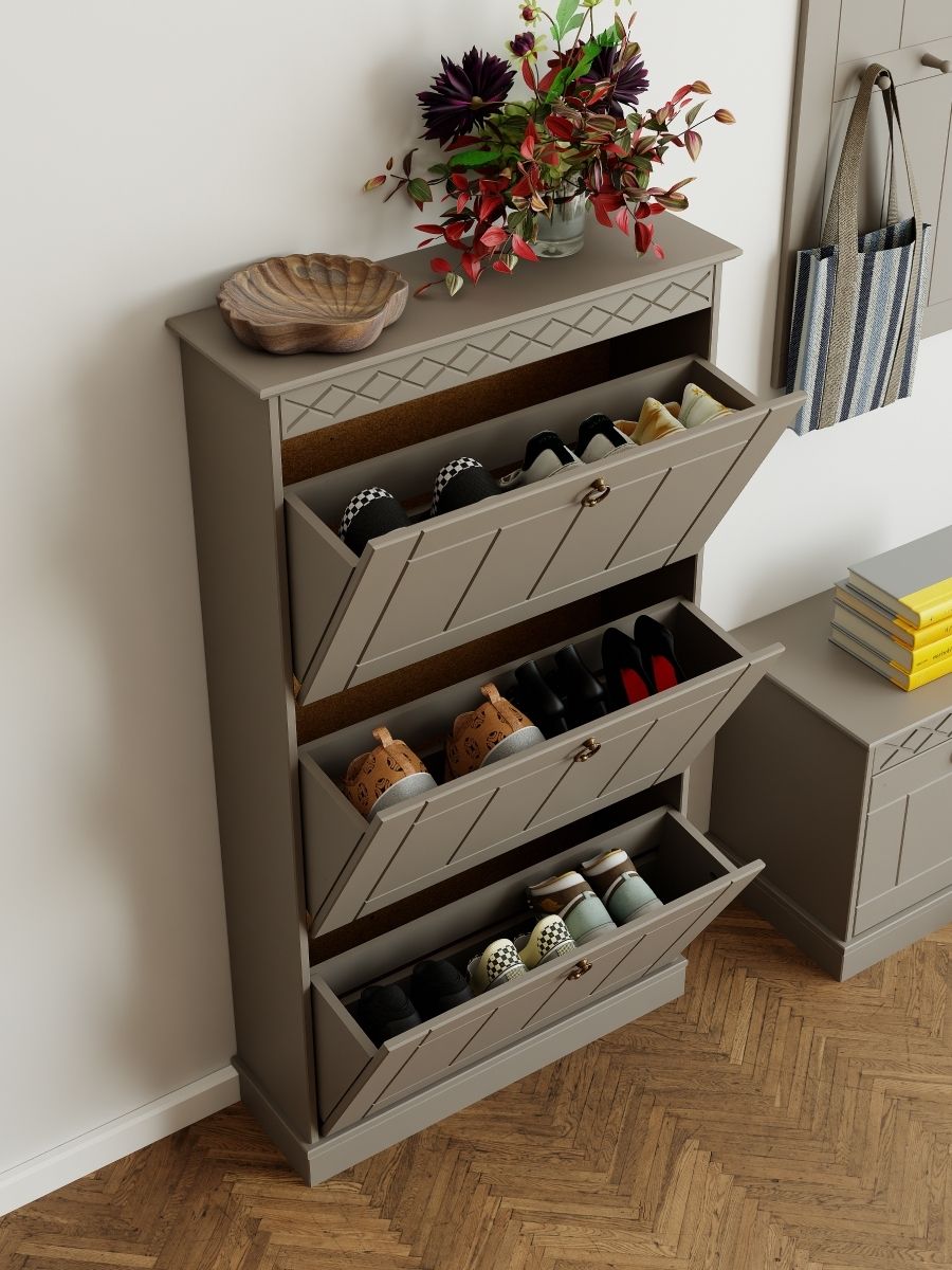 Благодаря компактным габаритам 123×66×21 см и трем удобным дверцам, обувница обеспечивает комфортное хранение и легкий доступ к обуви. Стильная и удобная, она помогает поддерживать порядок и гармонично вписывается в современный интерьер.