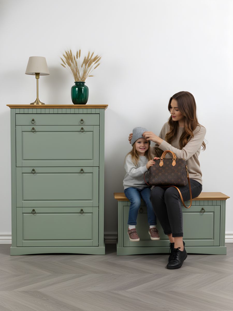 Зеленая обувница для прихожей станет незаменимым помощником в вашем доме, объединяя в себе функции хранения и комфортного использования.