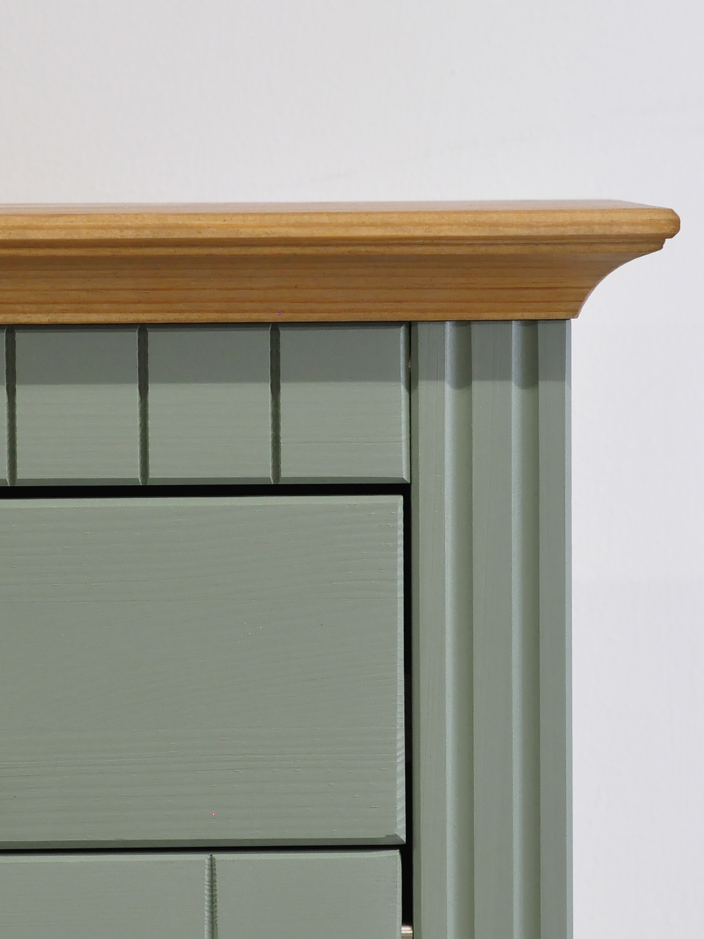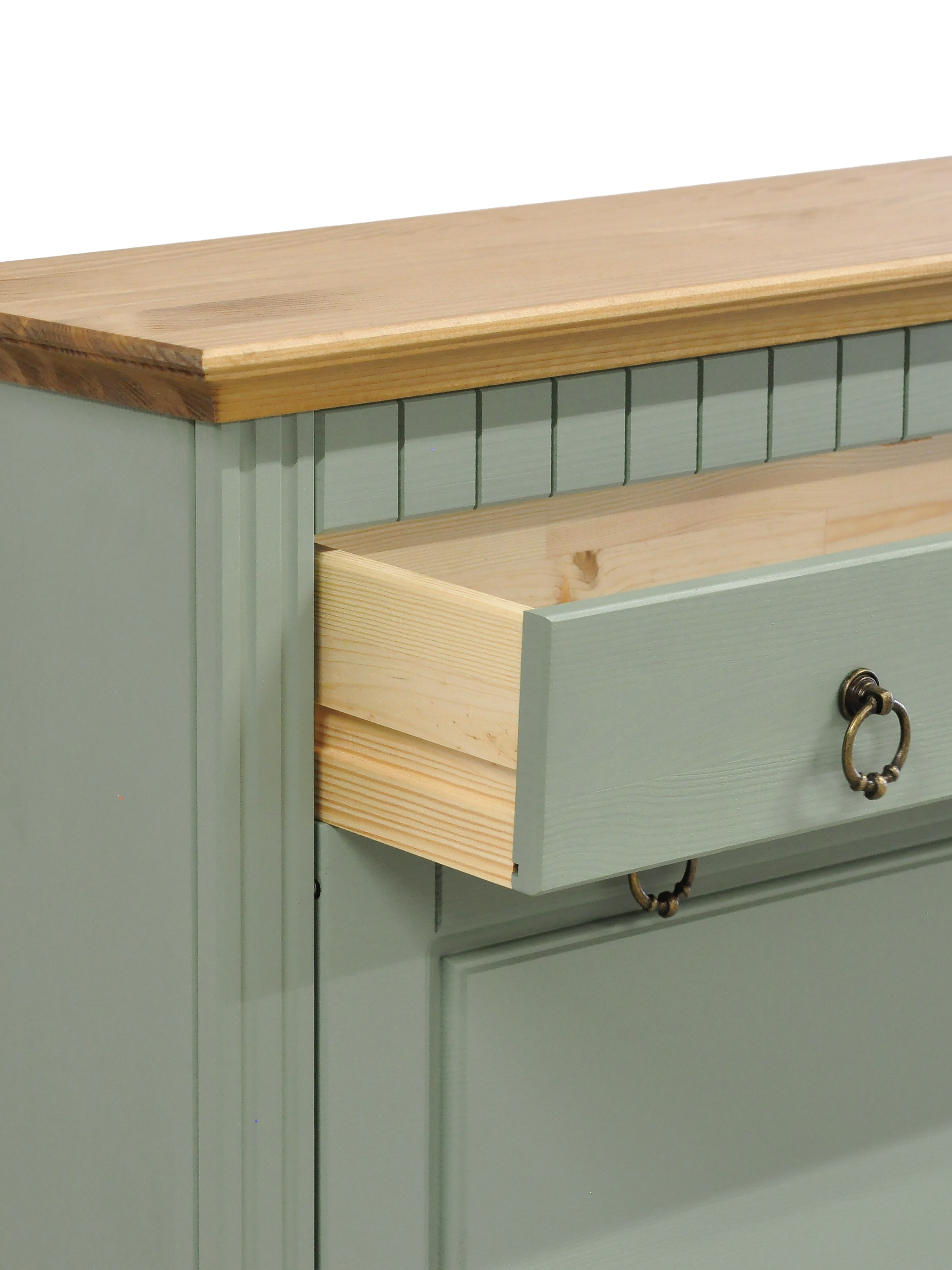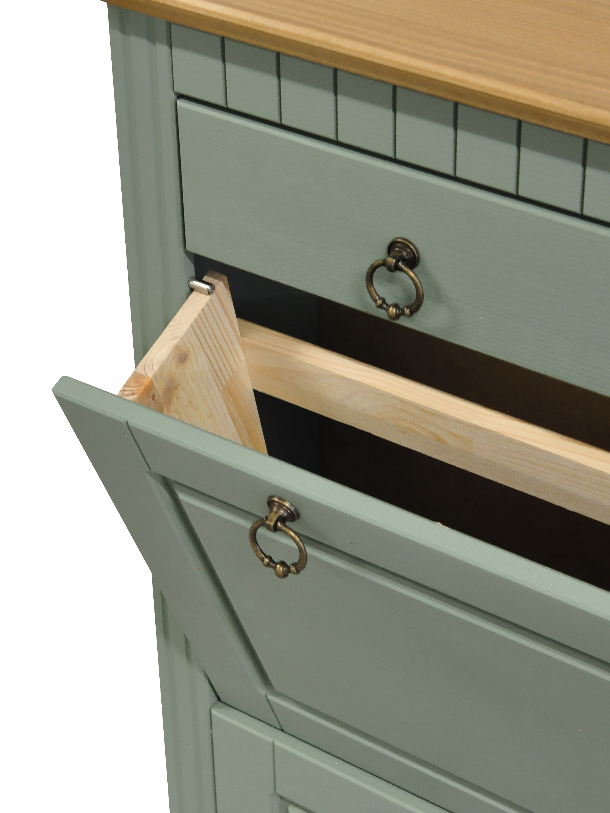 Выполненная из массива сосны, эта тумба для обуви не только предлагает удобное место для хранения обуви и других предметов, но и служит полноценным элементом интерьера прихожей. Благодаря зеленому цвету (за счет покрытия натуральным воском) обувница добавит элегантности и красоты Вашему помещению, сохранит приятный хвойный аромат и полезные свойства дерева. Это обеспечивает не только стойкость к внешним воздействиям, но и подчеркивает естественную красоту массива дерева. Фасад комода для обуви дополнен декоративными резными вставками, которые добавит изысканности в ваше помещение.
