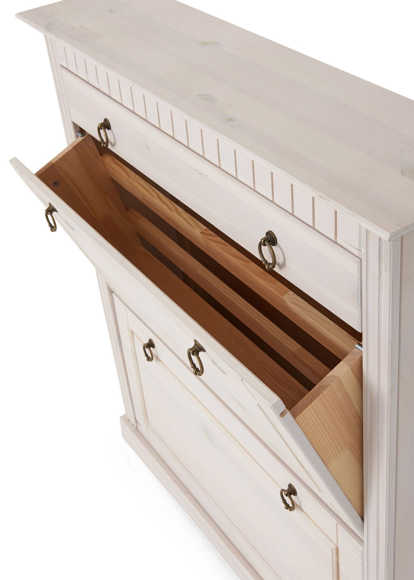 Выполненная из массива сосны, эта тумба для обуви не только предлагает удобное место для хранения обуви и других предметов, но и служит полноценным элементом интерьера прихожей. Благодаря белому цвету (за счет покрытия натуральным воском) обувница добавит элегантности и красоты Вашему помещению, сохранит приятный хвойный аромат и полезные свойства дерева. Это обеспечивает не только стойкость к внешним воздействиям, но и подчеркивает естественную красоту массива дерева. Фасад комода для обуви дополнен декоративными резными вставками, которые добавит изысканности в ваше помещение.