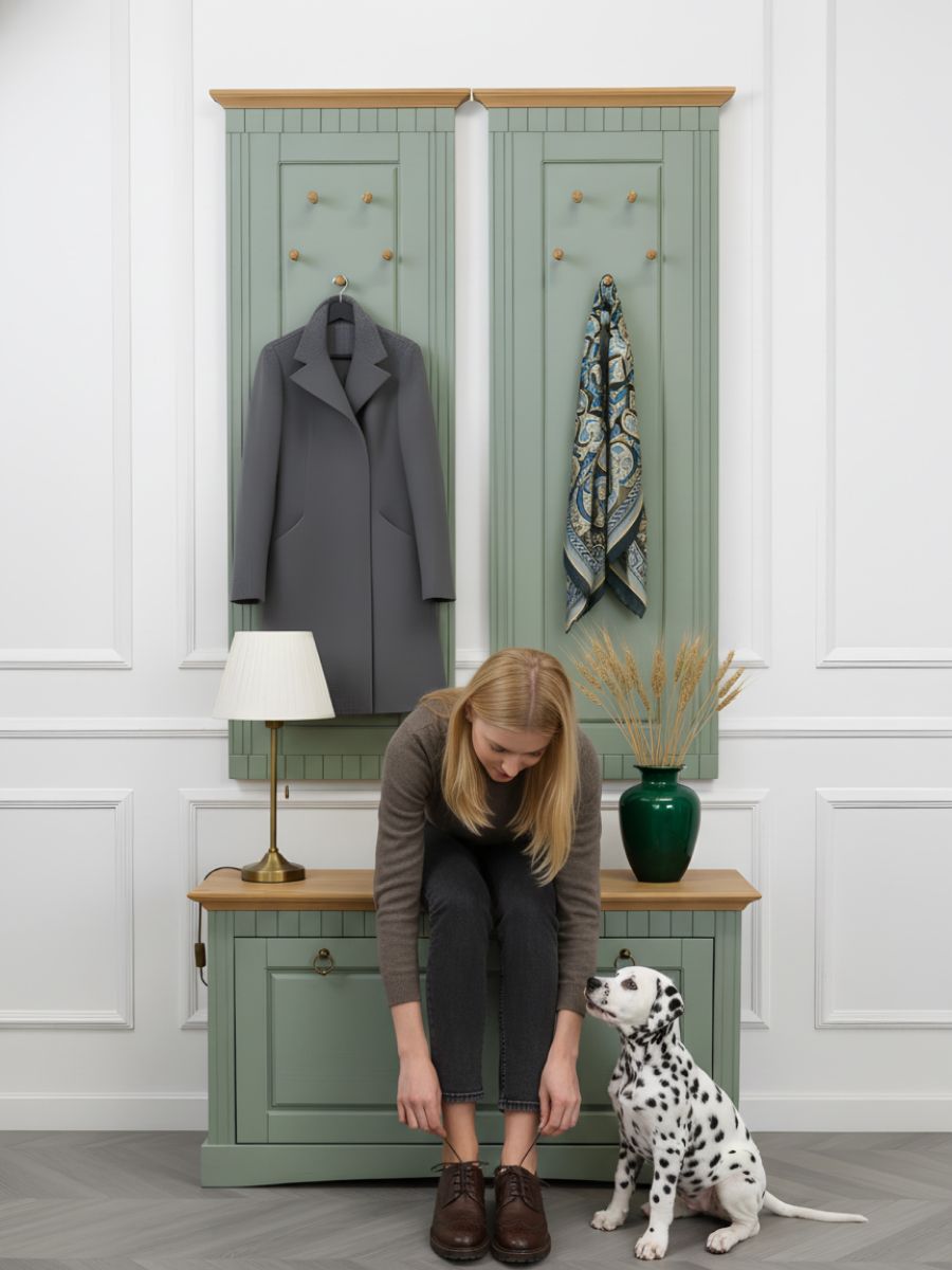 Благодаря своим размерам, деревянная скамья станет удобным решением для прихожих многих размеров.