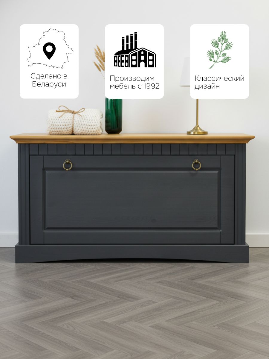 Выполненная из массива сосны, эта тумба для обуви не только предлагает удобное место для хранения обуви и других предметов, но и служит полноценным элементом интерьера прихожей. Благодаря серому цвету (за счет покрытия натуральным воском) обувница добавит элегантности и красоты Вашему помещению, сохранит приятный хвойный аромат и полезные свойства дерева. Это обеспечивает не только стойкость к внешним воздействиям, но и подчеркивает естественную красоту массива дерева. Фасад комода для обуви дополнен декоративными резными вставками, которые добавит изысканности в ваше помещение.
