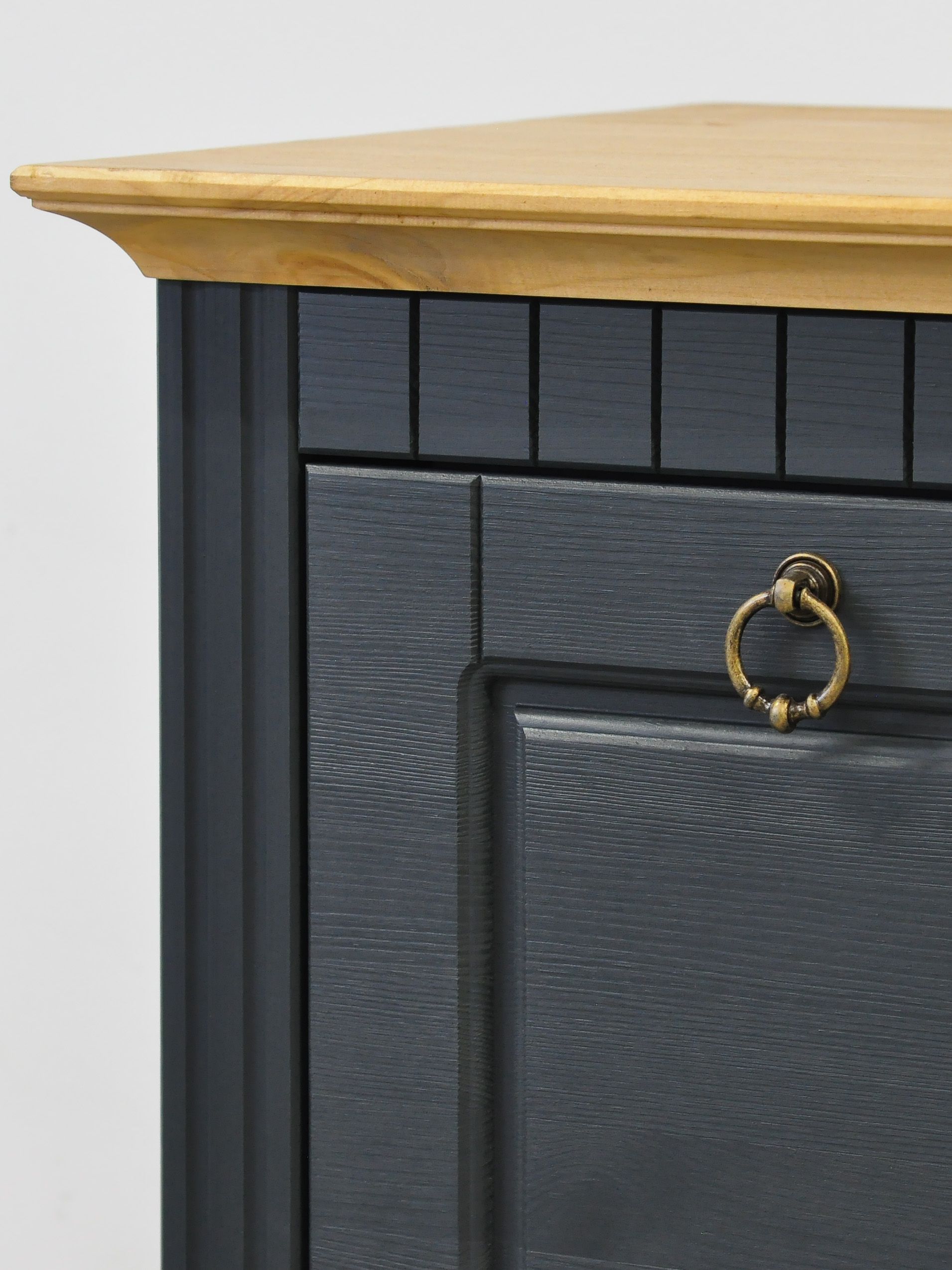 Допустимо крепление к стене при помощи уголка для большей устойчивости, в комплекте используются декоративные металлические ручки. Поставляется в разобранном виде, легко собрать за счет понятной инструкции и фурнитуры в комплекте. Задняя стенка и дно ящиков выполнены из ДВП для облегчения конструкции изделия.