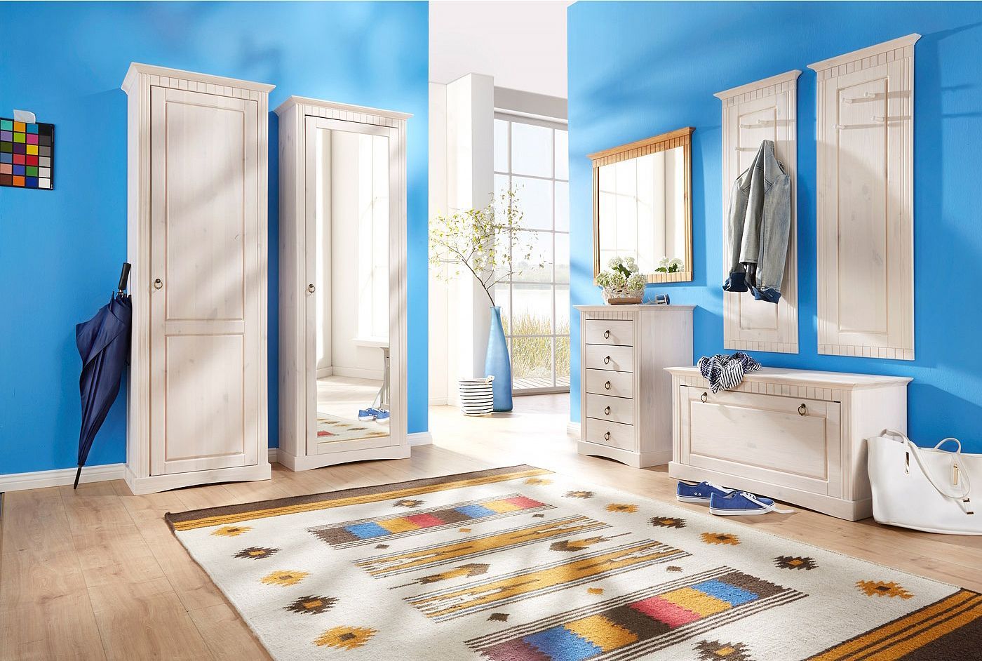 Благодаря своим размерам, деревянная скамья станет удобным решением для прихожих многих размеров.