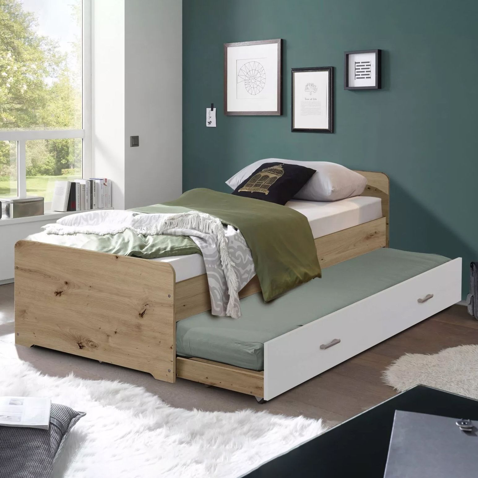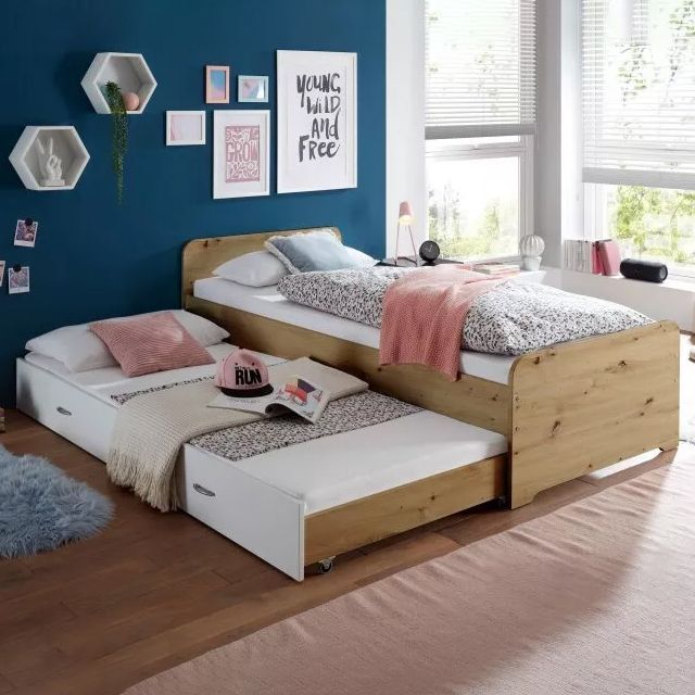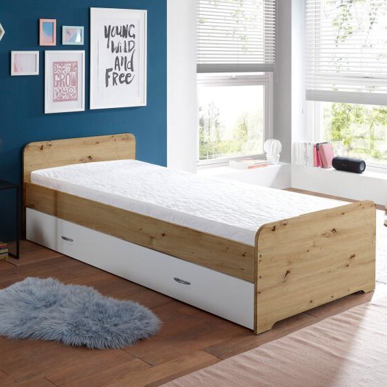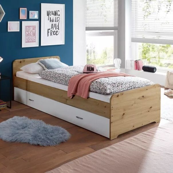 Односпальная детская кровать 90х200 Дупло: комфорт и функциональность в каждой детали! Невероятно универсальная односпальная кровать, которая не только станет украшением детской комнаты, но и превратит пространство в место уюта и радостных моментов. Сочетание цветов натурального дуба артизана и чистого белого придаст вашему интерьеру легкость и свежесть. Детская кровать идеально подойдет для любителей минимализма, скандинавского, а также современного стилей. Размеры кровати в собранном виде: Ширина х Глубина х Высота, см - 97.3 х 204.4 х 65 см – идеально подходят для детской комнаты, а внутренние размеры выдвижного ящика 90.2 х 190.6 х 15.8 см обеспечат удобное спальное место размером 90х190 см. Каркас односпальной кровати выполнен из ЛДСП цвета дуб артизан/белый, опорные рейки из МДФ, что гарантируют долговечность и безопасность. Два настила под каждое спальное место изготовлены из массива сосны, ручки выдвижного ящика на колесиках выполнены из металла. Толщина ЛДСП составляет 18 мм, МДФ - 30 мм. Конструкция кровати включает в себя основной каркас со спальным местом 90х200 см, ящик с выдвижным спальным местом размером 90х190 см и 2 настила из массива сосны под каждое спальное место. Максимальная допустимая нагрузка на кровать составляет до 120 кг, на ящик - 100 кг, что позволяет использовать ее для двух человек. Уникальной особенностью односпальной детской кровати является выдвижной спальное место 90х190 см, которые позволяет разместить на кровати еще 1 человека. Изделие поставляется в разобранном виде вместе с двумя настилами, полным комплектом фурнитуры и подробной инструкцией по сборке, что гарантирует легкость самостоятельной сборки. При изготовлении кровати использовалось ЛДСП в соответствии с европейскими стандартами безопасности (безопасное для человека ЛДСП в соответствии с европейскими нормами классов содержания формальдегида - не более 10 мг на 100 г). Приятная поверхность, края и фаски изделия были сглажены с целью предотвращения случайных ударов или зацепов – все для комфорта и безопасности вашего малыша. сглаженные края. Нежный цвет молочного дуба кровати всегда будет придавать комнате приятный и светлый внешний вид. Эта детская кровать отлично подойдет как для дома и квартиры, так для дачи и для загородного дома. Ее можно использовать как детскую кровать, односпальную кровать, односпальную тахту, а также как двуспальную кровать для детей с дополнительным спальным местом для создания уникального интерьера на долгие годы. Односпальную кровать можно купить при обустраивании детской комнаты в новой квартире или доме. Подойдет для стилей интерьера: минимализм, скандинавский, современный, модерн, эко-стиль. Эта детская кровать станет отличным выбором для вашего ребенка или в качестве подарка своим близким. Добавьте яркости и функциональности в детскую комнату с односпальной кроватью 90х200 Дупло!