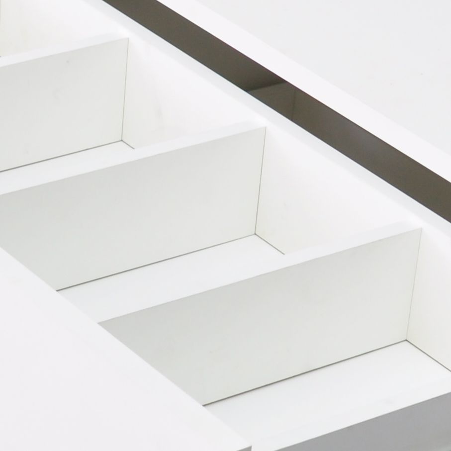 Каждый белый комод этой серии по умолчанию поставляется с 5 перегородками для ящиков, но мы также предоставляем Вам возможность докупить дополнительный набор органайзеров для хранения Ваших вещей.