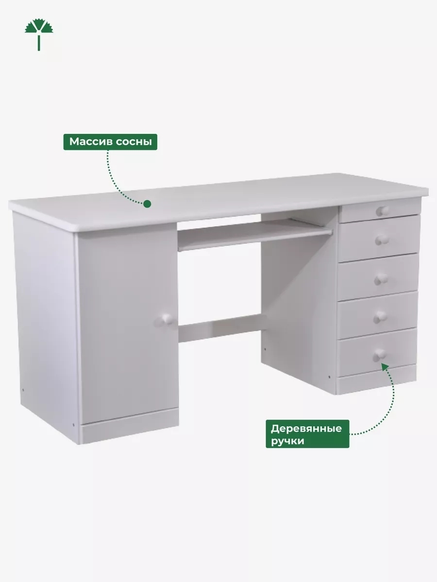 Письменный стол белорусского производителя "Диприз" из массива сосны обладает современным внешним видом. С одной стороны стол снабжен вместительной тумбой, а с другой — несколькими выдвижными ящиками. Имеется также удобная выдвижная полочка для клавиатуры. Стол отлично подойдет для детской комнаты и офиса.
