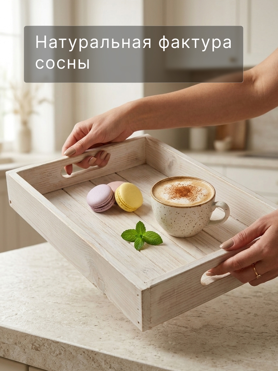 Деревянный поднос столик для завтрака 38х28 см из массива сосны Флоутард - идеальное решение для вашего дома, квартиры или дачи. Этот декоративный поднос из натурального дерева будут служить не только стильным декором, но и практичным помощником в организации пространства.
