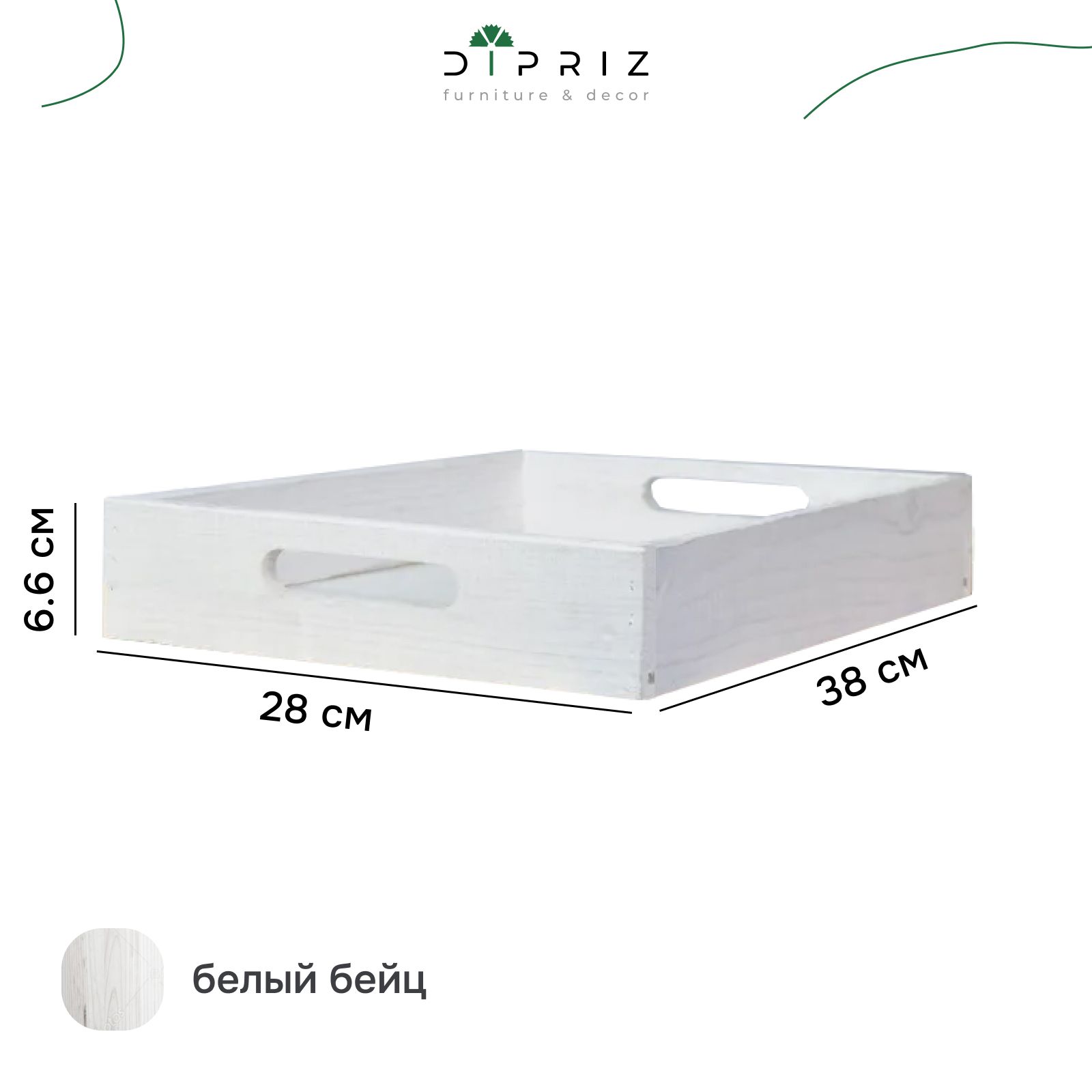 Столик для завтрака имеет размеры Высота х Глубина х Ширина: 6.6х28х38 см, а внутренние размеры составляют 5х25.6х35.6 см. Дно подноса состоит из прочной фанеры, которая имеет грубоватую шероховатую поверхность, а максимальная нагрузка на него составляет 5 кг. Столик для завтрака покрыт белым бейцем, края хорошо прошлифованы, что позволяет его использовать сразу после покупки и простой сборки. Его белый цвет придает ему особый шарм и гармонично вписывается в любой интерьер.