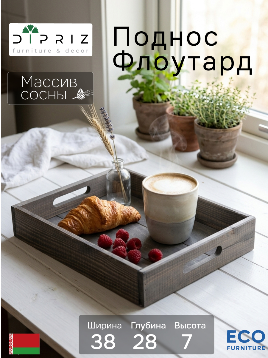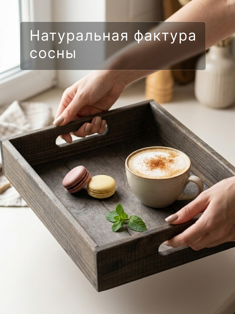 Деревянный поднос столик для завтрака 38х28 см из массива сосны Флоутард - идеальное решение для вашего дома, квартиры или дачи. Этот декоративный поднос из натурального дерева будут служить не только стильным декором, но и практичным помощником в организации пространства.