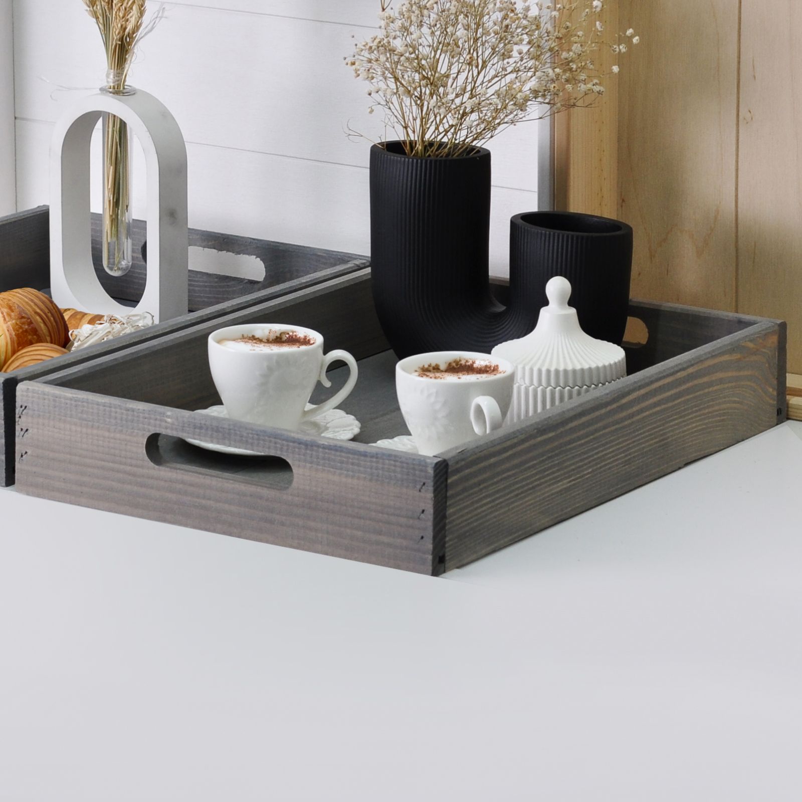 Декоративный поднос для кухни идеально подойдут в качестве столиков для завтрака в постели. За счет удобных ручек его можно использовать для переноски пищи и других предметов из одного места в другое. Деревянный поднос также прекрасно подходит для хранения мелких предметов, помогая организовать пространство вокруг вас. Этот функциональный прямоугольный столик-поднос прекрасно подойдет для пляжа, пикника или использования в погребах и кладовых для хранения плодов, овощей, фруктов, сухофруктов, трав и зелени.