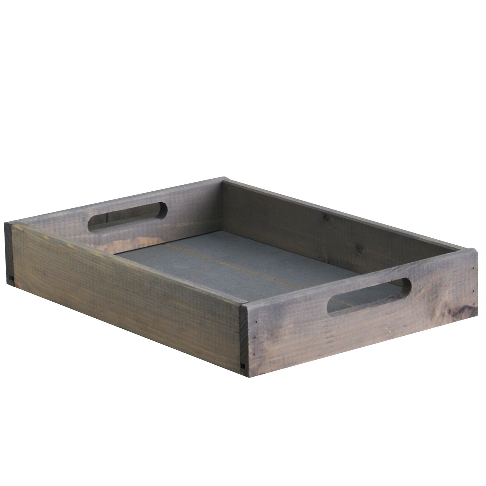 Столик для завтрака имеет размеры Высота х Глубина х Ширина: 6.6х28х38 см, а внутренние размеры составляют 5х25.6х35.6 см. Дно подноса состоит из прочной фанеры, которая имеет грубоватую шероховатую поверхность, а максимальная нагрузка на него составляет 5 кг. Столик для завтрака покрыт серым бейцем, края хорошо прошлифованы, что позволяет его использовать сразу после покупки и простой сборки. Его серый цвет придает ему особый шарм и гармонично вписывается в любой интерьер.