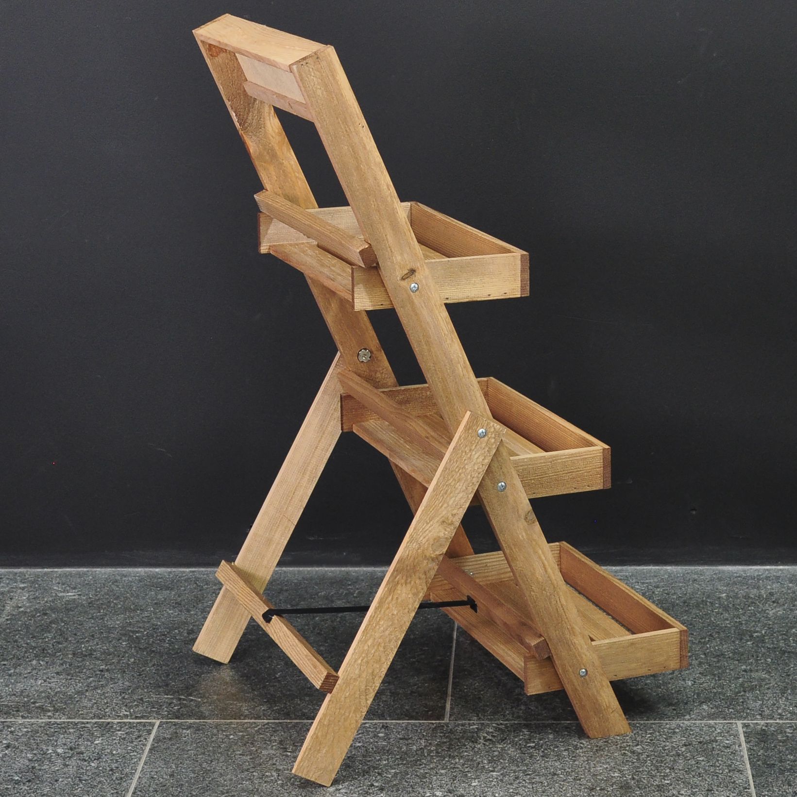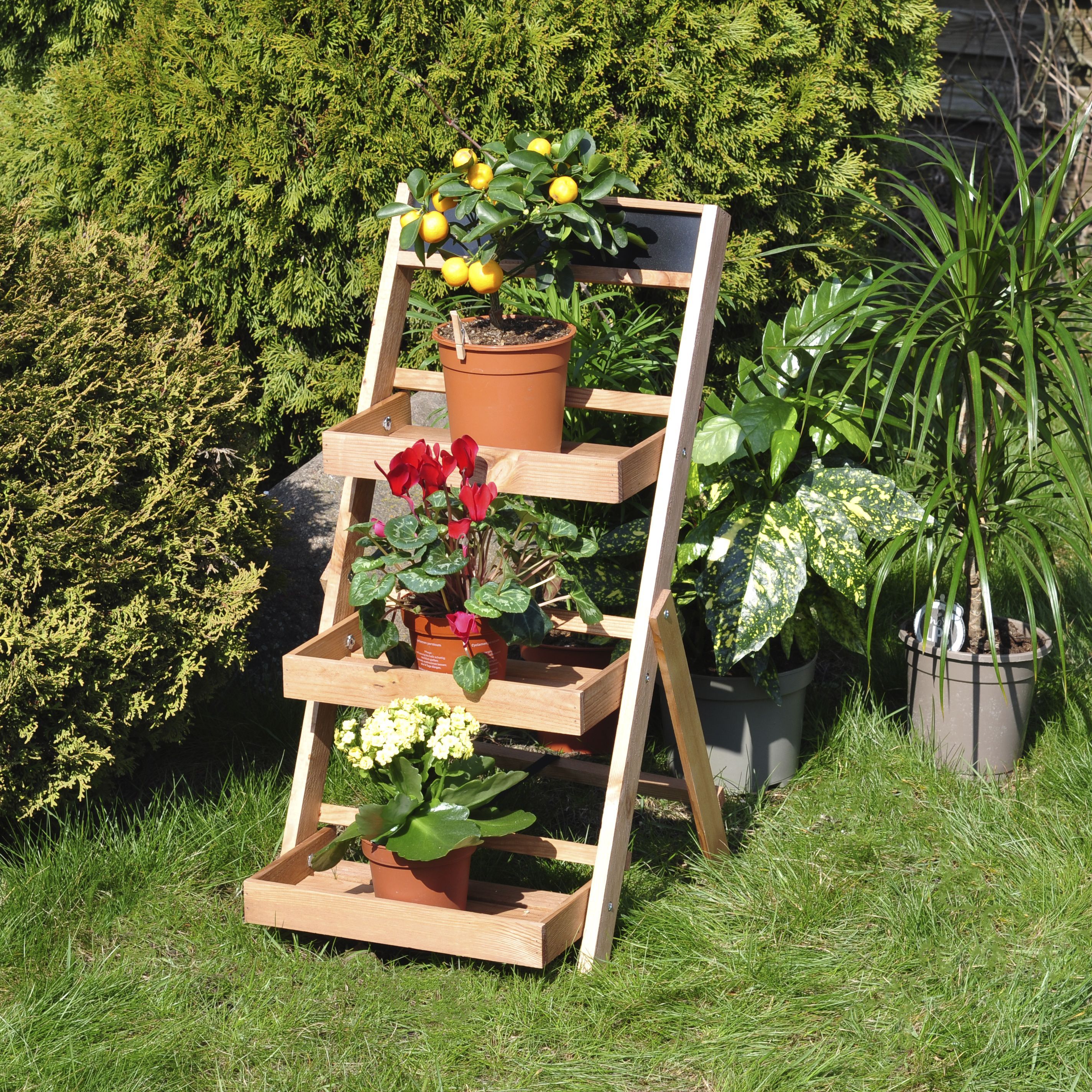 Для удобства этажерка для цветов уже собрана и готова в использованию - чтобы поставить напольную подставку достаточно только раскрыть ножки. Компактная складная конструкция особенно подходит для сезонных растений - в сложенном виде стеллаж для цветов занимает совсем немного места.