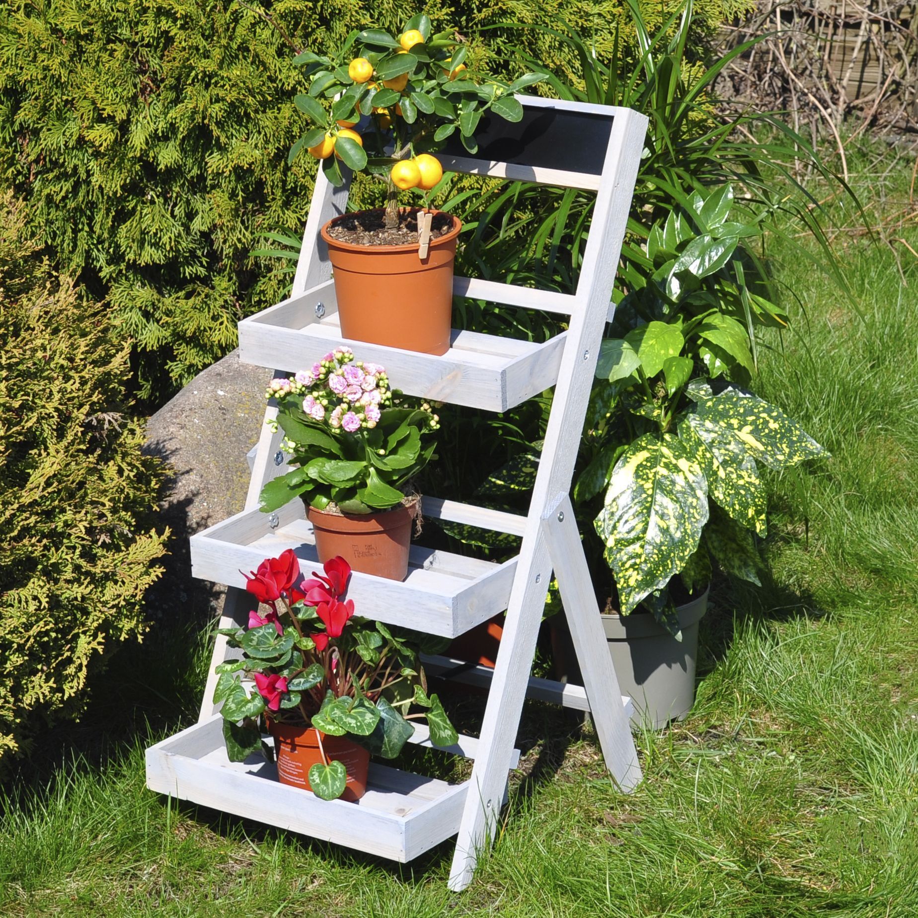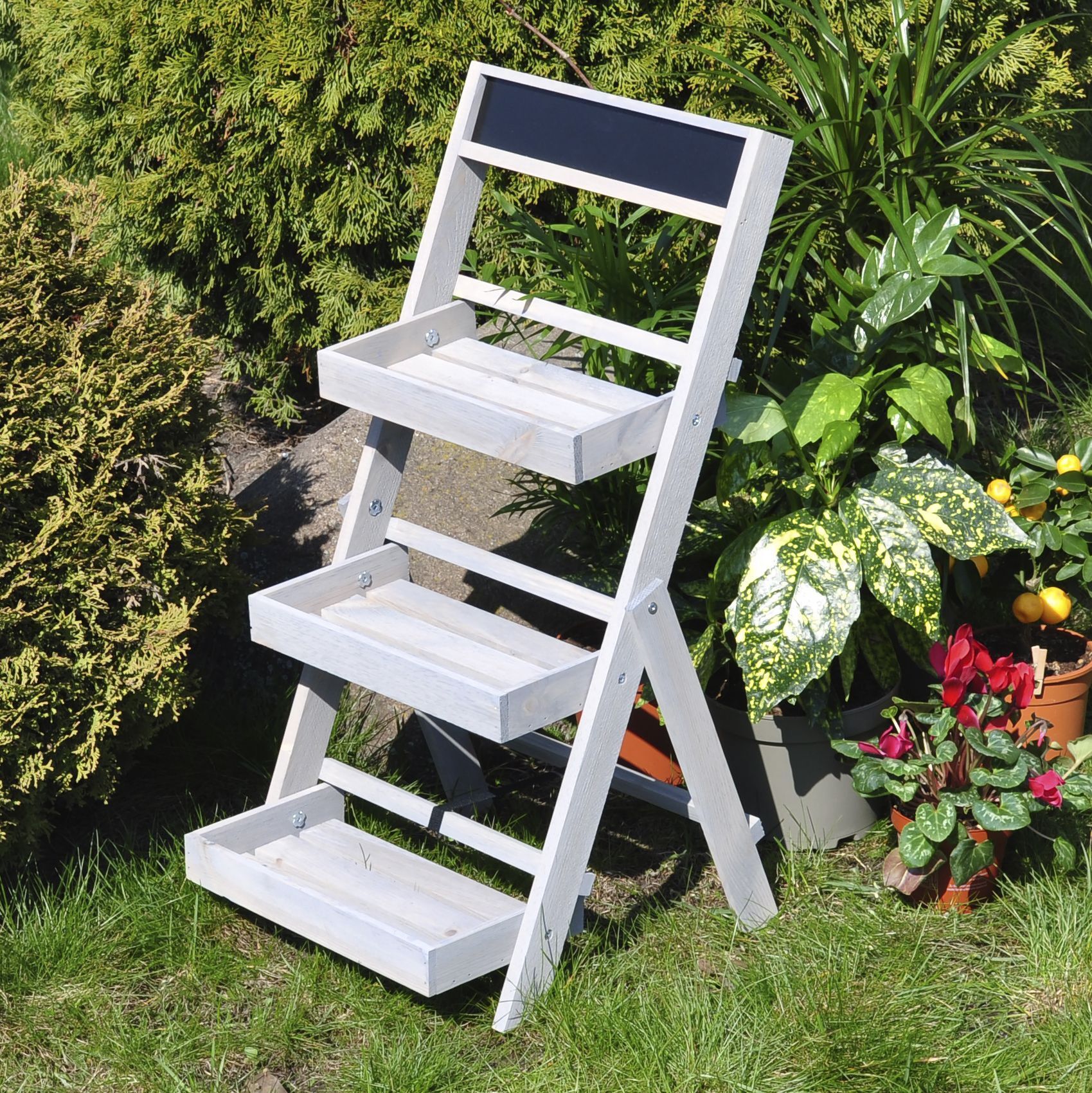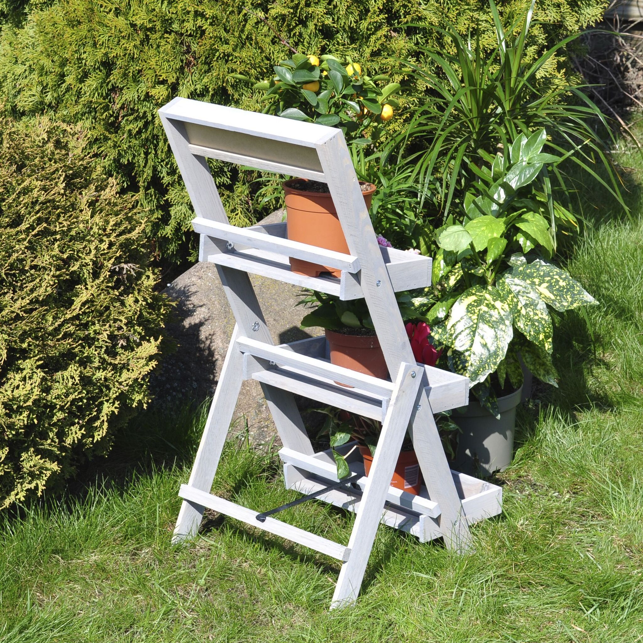Для удобства этажерка для цветов уже собрана и готова в использованию - чтобы поставить напольную подставку достаточно только раскрыть ножки. Компактная складная конструкция особенно подходит для сезонных растений - в сложенном виде стеллаж для цветов занимает совсем немного места.