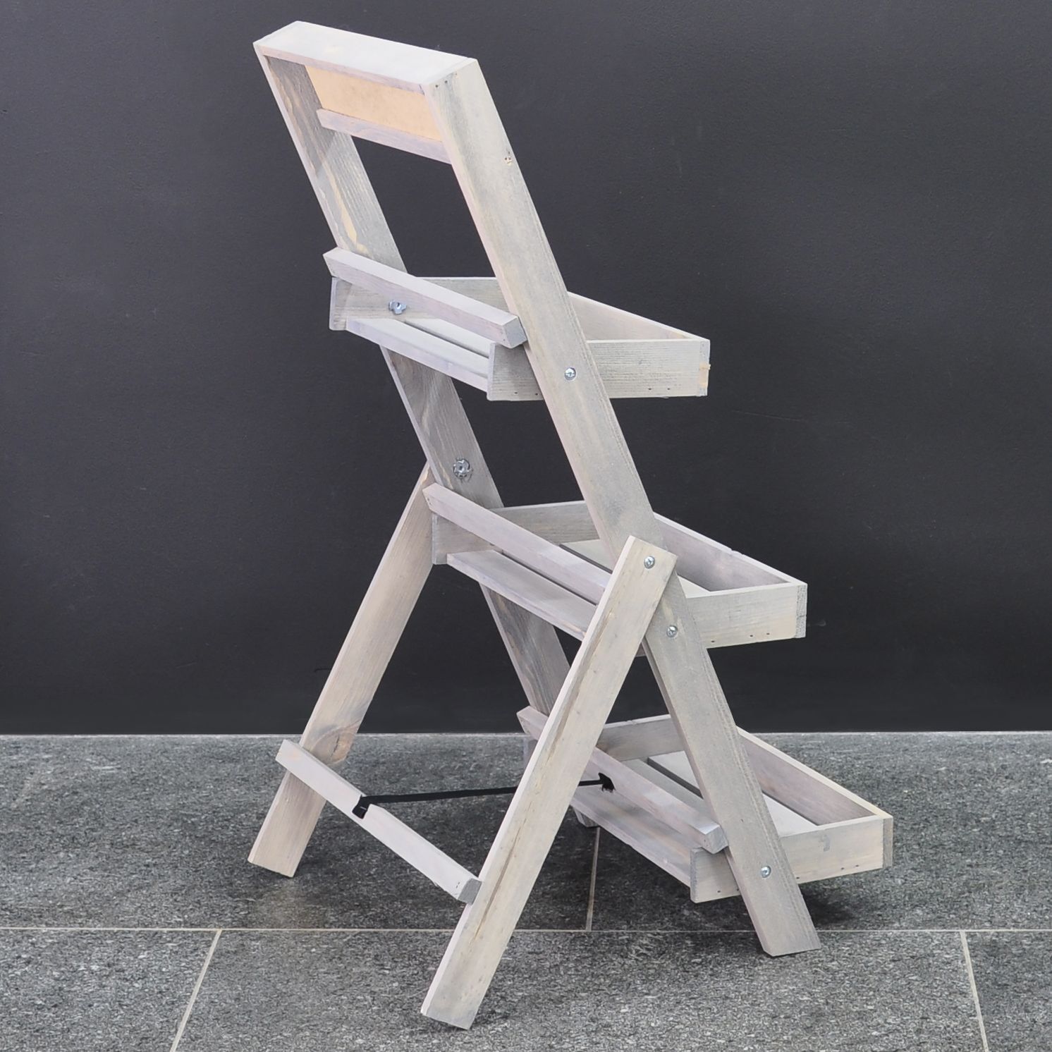Напольная складная подставка для цветов и декора в стиле рустик украсит любой дворик, будь то дом, дача, магазин или балкон в вашей квартире. Деревянная этажерка для цветов Флорэль из натурального массива сосны от белорусского производителя "Диприз" - идеальное решение для озеленения комнаты, квартиры, балкона или дворика. Стеллаж для цветов на 3 полки изготовлен из экологически чистого материала - массива сосны и покрыт серым бейцем на водной основе, что придает ему особый шарм и натуральность.