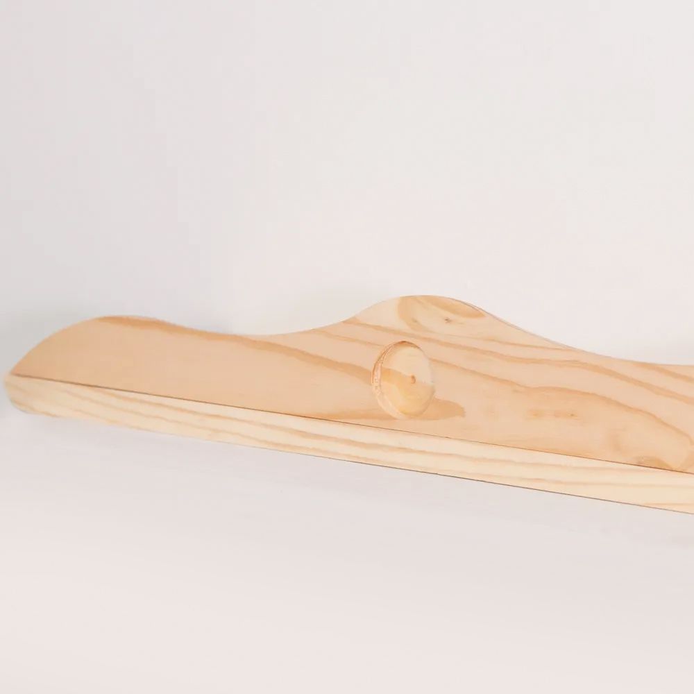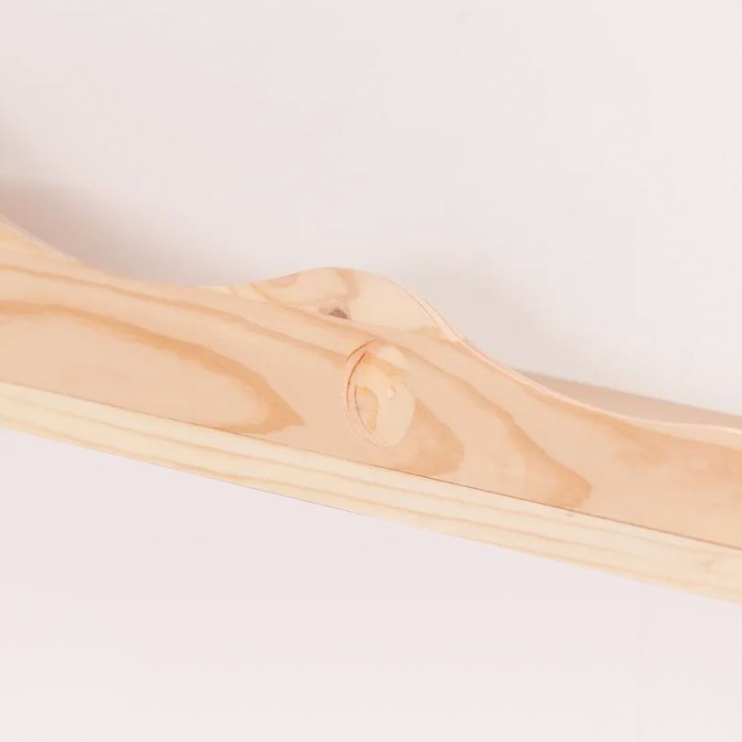 Размеры полки в собранном виде: Ширина х Глубина х Высота - 115х15х11.9 см. Толщина дерева составляет 14 мм, максимальная допустимая нагрузка на полку составляет до 5 кг. Полку из массива сосны легко закрепить на стене за счет подвес диаметром 30 мм (идут в комплекте), отверстия под которые уже встроены в изделии.