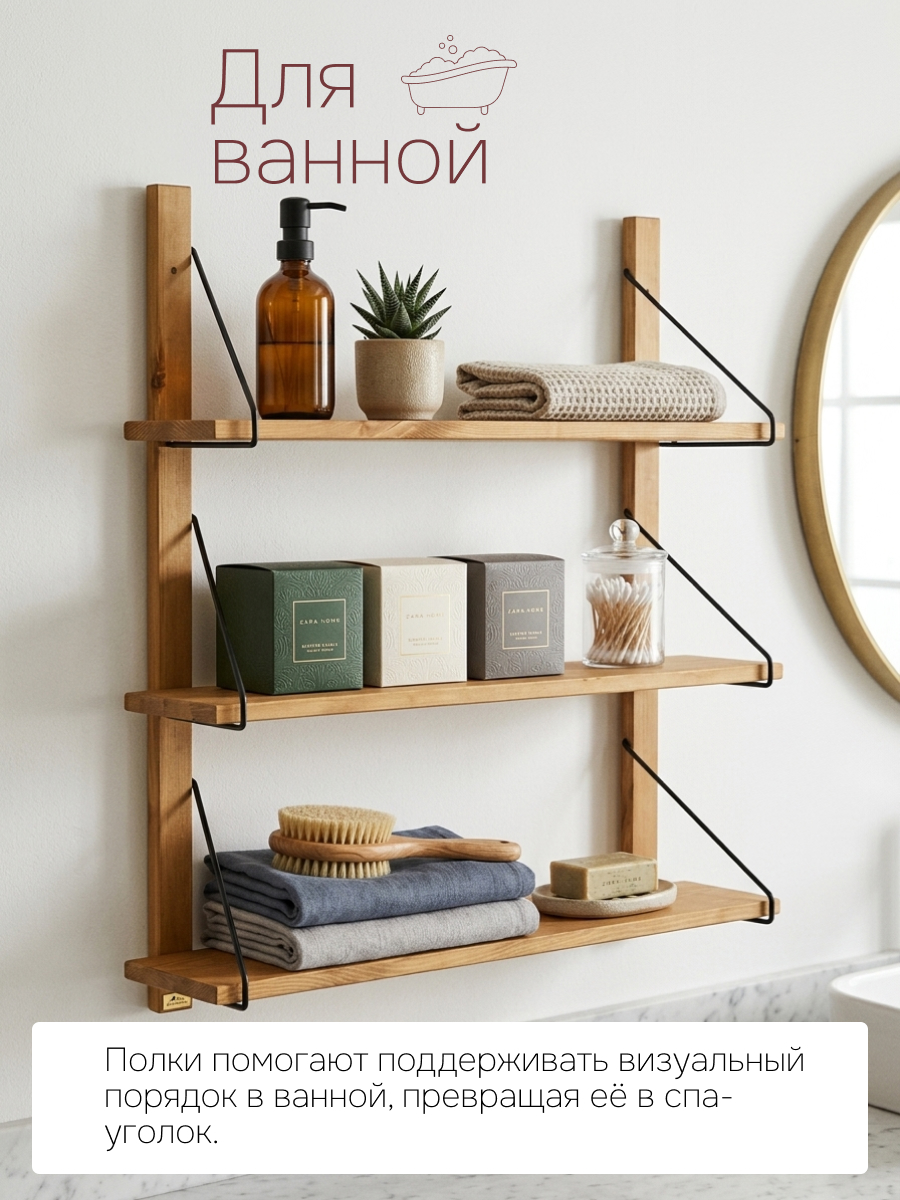 Ванной: Организуйте порядок для парфюма, баночек с уходом, свернутых полотенец и свечей. Добавьте веточку лаванды — и рутина превратится в SPA-ритуал.