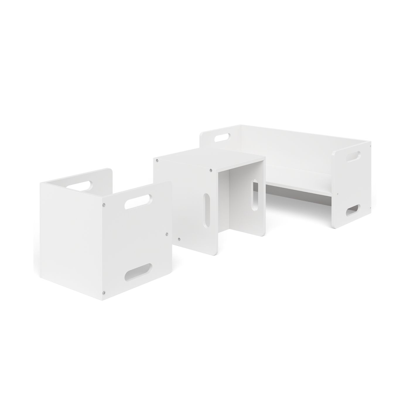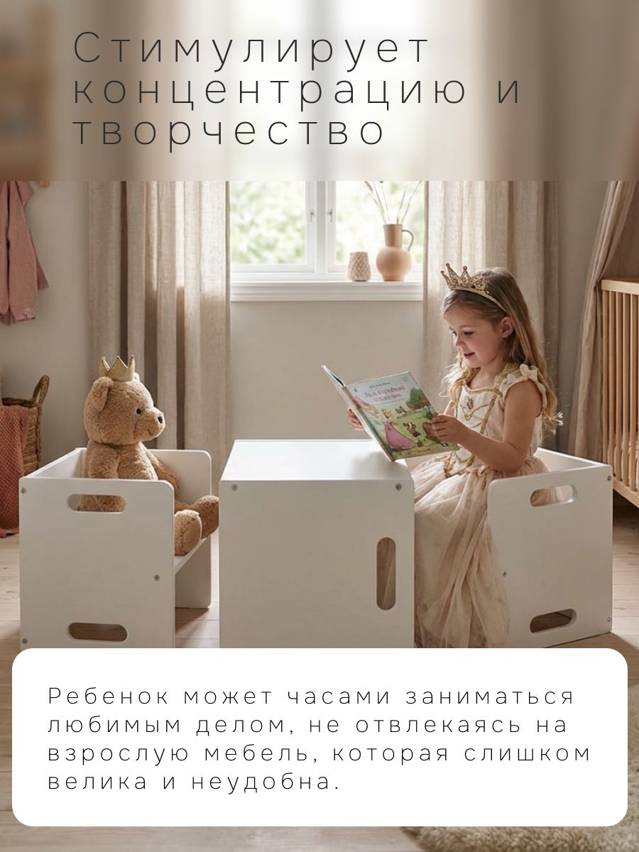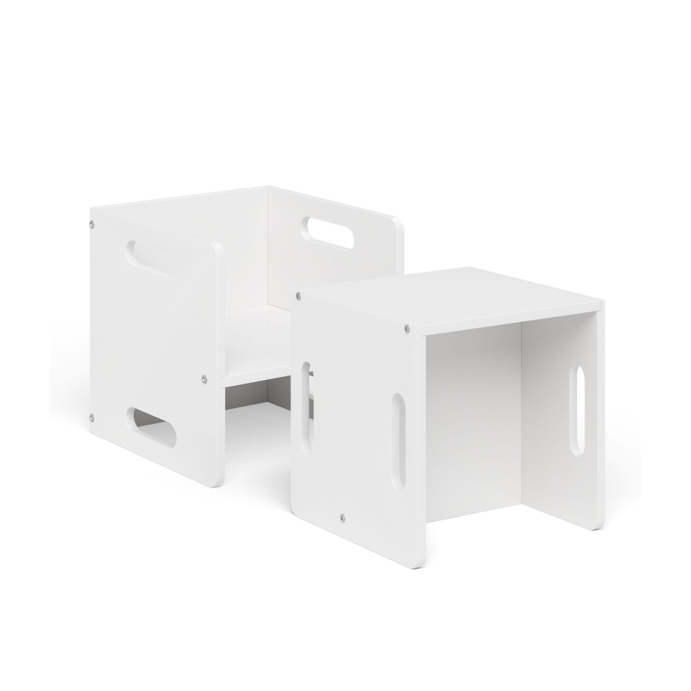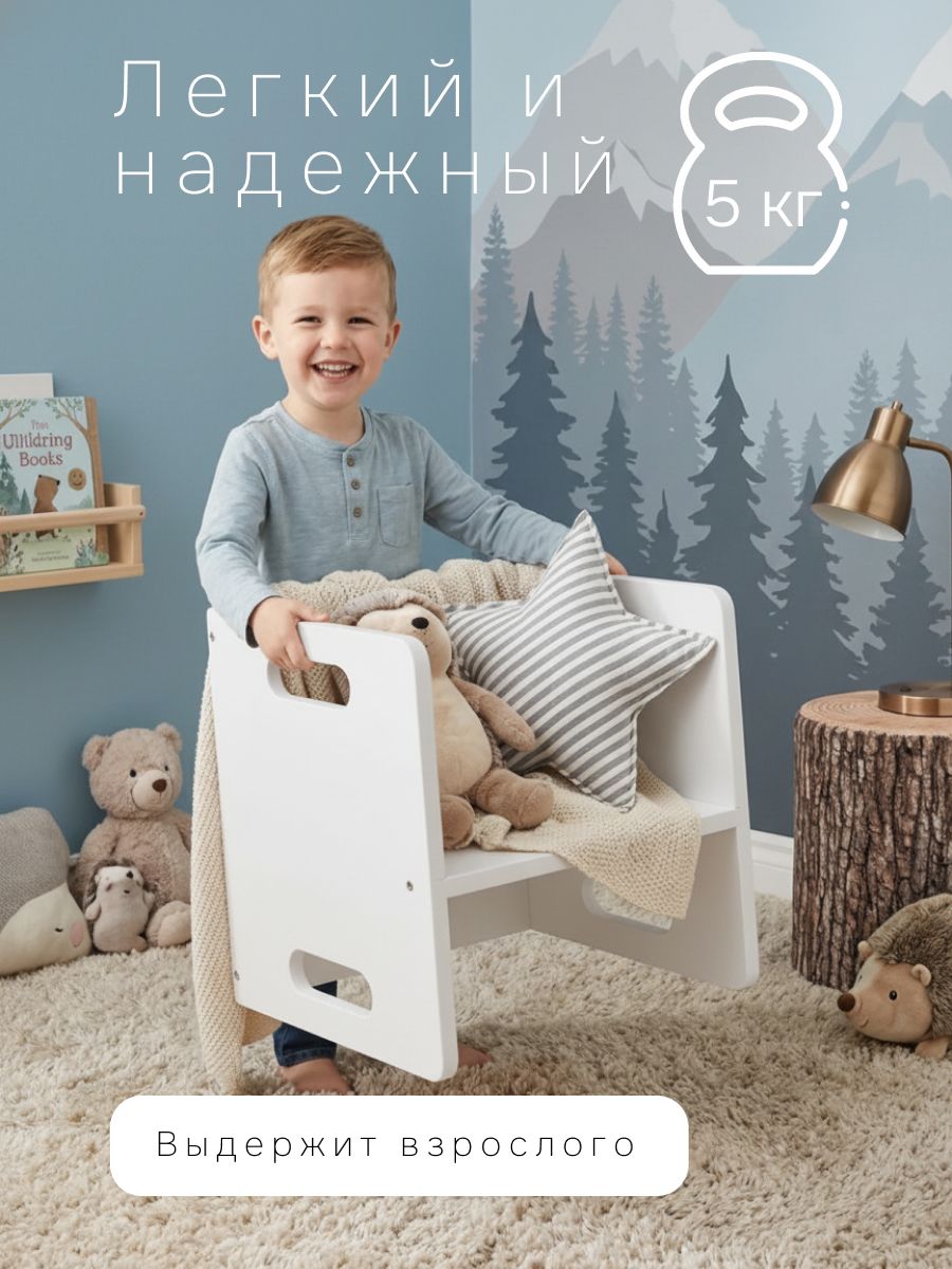 Благодаря возможности установки в 3 положениях, этот столик может быть использован как детский стол, растущий стул для детей и даже скамья для обуви. Все это в одном компактном изделии! Также вы можете дополнительно приобрести больший вариант детского стола перевертыша, тем самым собрав стильный набор детский стол и стул.